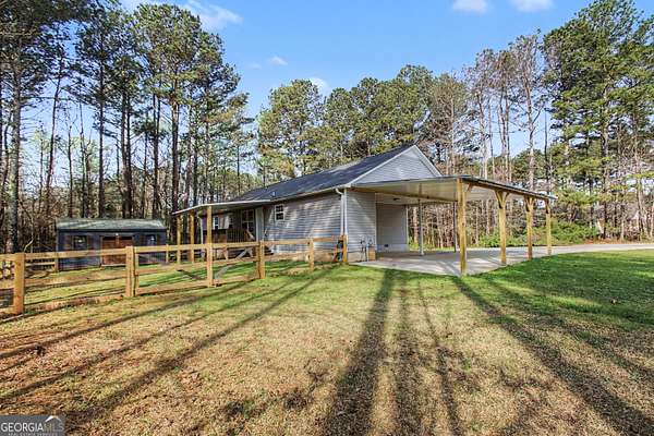 Welcome home to 228 Emerald Circle - A charming 3-bedroom, 2-bath one-level home offering the perfect blend of comfort, privacy, and convenience! Enjoy relaxing mornings on the covered front porch overlooking a spacious, open front yard that provides a welcoming first impression and plenty of room for outdoor enjoyment. The extended covered carport and expanded driveway offer ample parking for guests and multiple vehicles. Inside, you'll find durable LVP flooring throughout the main living areas and newer carpet in the bedrooms. The spacious kitchen comes fully equipped with refrigerator and gently used appliances, making it move-in ready. Situated on over 1.5 acres, this property offers peaceful country living just minutes from town. Set back off the road and surrounded by mature trees, you'll love the added shade and privacy. The large front yard creates a beautiful sense of space, while the fenced backyard, newly covered back patio, and large storage building provide the perfect setup for outdoor living, pets, or hobbies. Major updates include a brand-new HVAC system, a newer roof installed in August 2022, and fully encapsulated crawl space-giving buyers peace of mind. A charming koi pond in the front flower bed adds a unique touch of character to the home's curb appeal. Don't miss this incredible opportunity to own a private retreat in a great location-schedule your showing today!