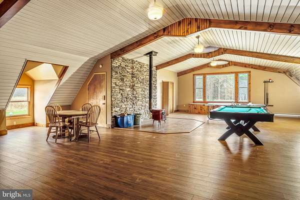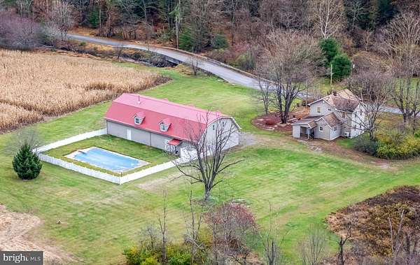 Est $5,482/mo143 acre Hunter's Paradise with a 3 bedroom house, 40'x84' garage with a large finished 2nd floor living quarters & rec room, large bunk room, kitchen, dining room & bath, 1st floor equipment storage with 4 large garage doors, 3 large food plots, corn fields, large pond, native trout stream, hunting blinds, 20'x40'x8' deep inground swimming pool. Great deer, bear & turkey hunting property. This is a nice home away from home, property for large group rentals or possible Airbnb.