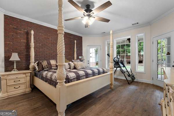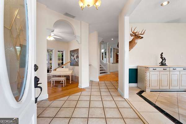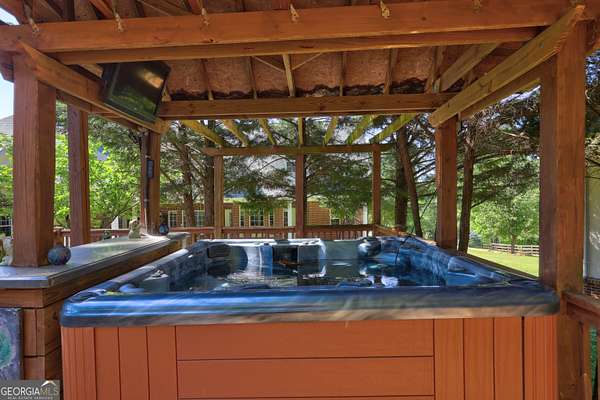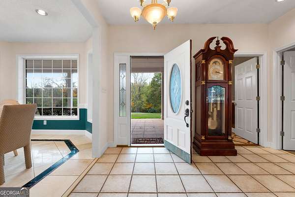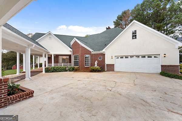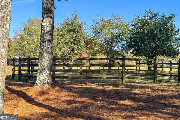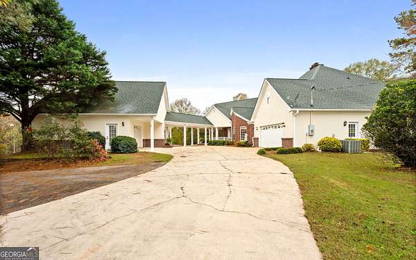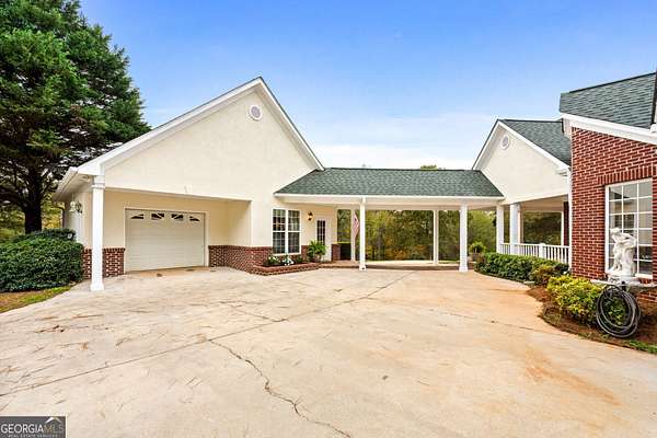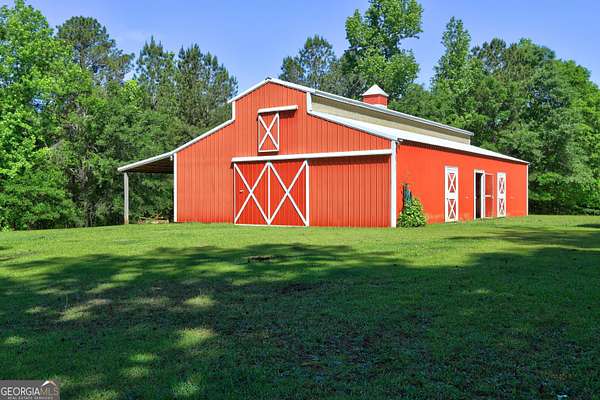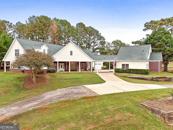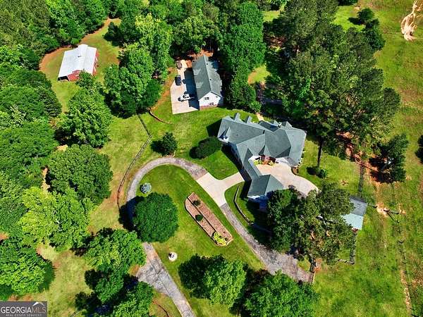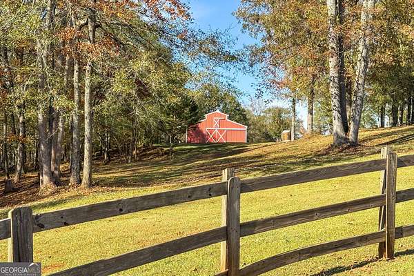 Priced below recent appraisal This private 24+ acre equestrian property offers Georgia country living at its finest. As you pass through the front gate you'll be captivated by the picturesque landscape that unfolds along the tree-lined, winding driveway leading you past rolling fields and a serene pond to the custom-built home and classic red barn. There's also a custom 3-car garage with workshop space and partially finished 2BR apartment above. Main house exterior features include a climate controlled 1-car garage with guest room and private bath connected by the porte-cochere, and a detached 2-car garage with upstairs storage area ripe for finishing. You'll notice a thoughtful layout in the main residence complete with master suite on the main level, and two additional bedrooms on the opposite side sharing a jack and Jill bathroom. The inviting living room with floor to ceiling stone fireplace seamlessly flows into the open kitchen with spacious island perfect for culinary pursuits. Expansive upstairs complete with den, office area and three bedrooms currently utilized as a game room, theater room, and rustic man cave with private bathroom. Equestrian enthusiasts will appreciate the round pin on the property and the horse barn featuring six spacious 15x15 stalls, water and electricity, tack room, hay loft, and convenient lean-to attachment for equipment. Indian Creek runs through the back of the property. While the beauty of this remarkable estate is best experienced in person, we invite you to experience the magic through our virtual video tour.