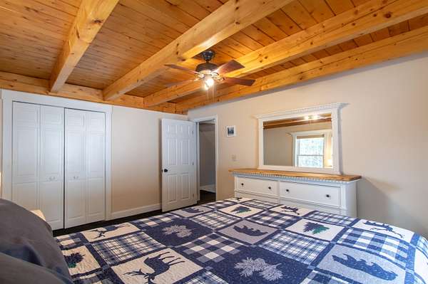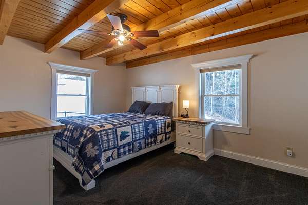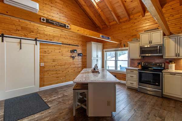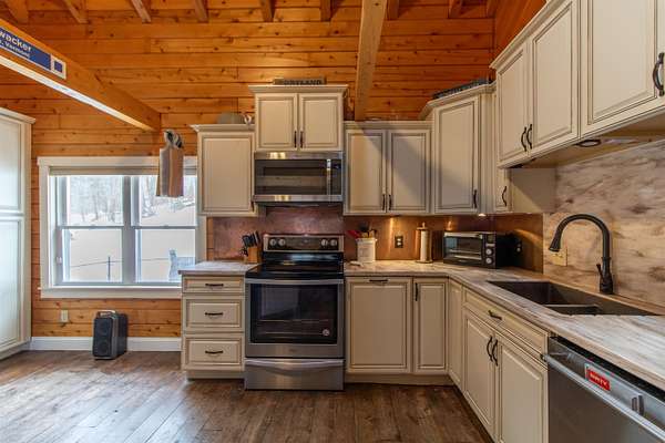 Take a tour of this inviting log cabin home, ideally located just outside of Lyndon with easy highway access and a short drive to Burke Mountain and the Kingdom Trails. Whether you’re looking for a full-time residence or a vacation getaway, this fully furnished home is ready to enjoy from day one. Warm wood finishes and a cozy wood stove create classic cabin charm, while thoughtful updates throughout provide modern comfort. The updated kitchen features stainless steel appliances, and a mini-split system ensures year-round comfort for everyone. The main level offers two comfortable bedrooms, a spacious full bath, and convenient laundry. Upstairs, the primary suite is a true retreat, complete with a private porch showcasing long-range views, a walk-in closet with built-in storage, and a beautifully updated bathroom. The lower level is designed for relaxation and entertainment, featuring a game room with a pool table, bar, and plenty of space to unwind after a day on the trails. For those working remotely, the newly finished office space above the garage offers quiet and separation from the main living area. The garage below provides ample room for vehicles, tools, and projects. Don’t miss this well-cared-for home that perfectly blends comfort, functionality, and fun in a prime Northeast Kingdom location