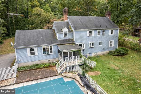 Dive into comfort, convenience, and pure backyard bliss! This spacious 5-bedroom colonial has all the room you've been craving PLUS an in-ground pool and a peaceful, wooded backdrop. Inside, you're greeted by a grand 2-story foyer, fresh paint, beautiful hardwood floors, and upgraded picture/chair molding. The kitchen and family room shine with brand-new tile flooring-perfect for high-traffic living-and the flow is ideal for entertaining. Cozy up by the wood-burning stove in the living room, host dinner parties in the dining room, or utilize the main-level bedroom for guests, office, or multi-generational living. The fenced yard is ready for pets, play, or simply relaxing poolside. Great layout, great updates, and great location-this is the one you'll want to call home!