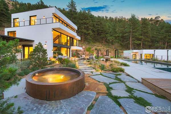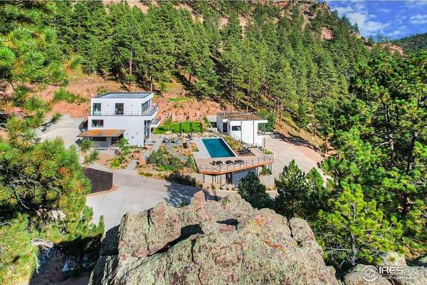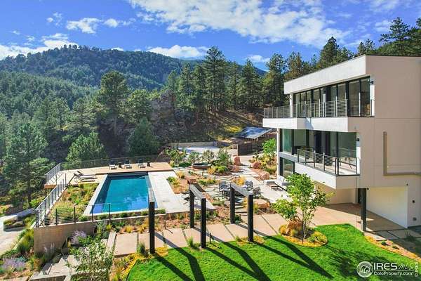 Welcome to Lion Point-an ultra-luxury mountain estate where contemporary architecture, total privacy, and forward-thinking sustainability meet, just ten minutes from Pearl Street and the soon-to-arrive Sundance Film Festival. Set on almost 15 pristine acres with dramatic rock outcroppings, ancient forest, and a 1,000-year-old Ponderosa Pine, this property offers sweeping south-facing views and unparalleled serenity.Built with German Passivhaus principles, the home delivers exceptional comfort and efficiency through insulated wall systems, triple-pane windows, airtight construction, and a 10 kW solar array. The main residence features 6 bedrooms and 4.5 baths, anchored by a chef's kitchen with Thermador appliances, custom lacquer cabinetry, and Yule marble. The great room showcases soaring ceilings and floor-to-ceiling glass framing cinematic mountain vistas.A private cinema room enhances entertainment, while the primary suite includes a spa-inspired bath, walk-in closet, dedicated office, and radiant morning light. Healthy living materials-low-VOC finishes and formaldehyde-free insulation-pair with Savant smart-home technology for effortless control of lighting, climate, security, and audio.Outdoor amenities include a pristine emerald pool, custom copper hot tub, steam sauna, full outdoor kitchen, ambient lighting, and landscaped pathways with automated irrigation. A beautifully finished ADU provides an additional living space. Radiant heating, fire-resistant exterior materials, and expansion potential complete this one-of-a-kind estate.Whether a primary or secondary home, Lion Point is a great way to invest in the future growth of Boulder as Sundance and other events light the way.Lion Point is a private sanctuary of design, nature, and innovation-perfectly positioned above Boulder's rising cultural moment.