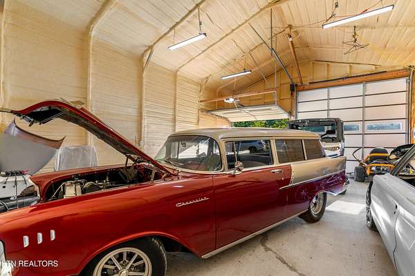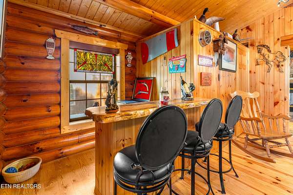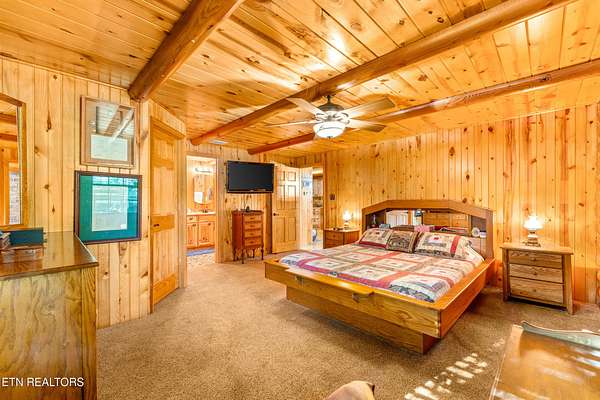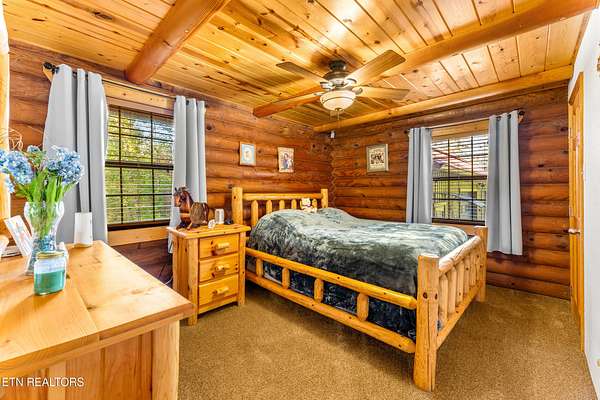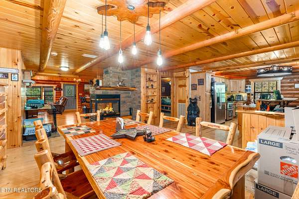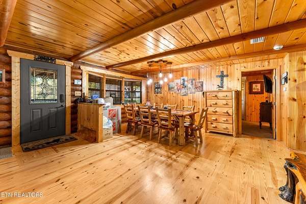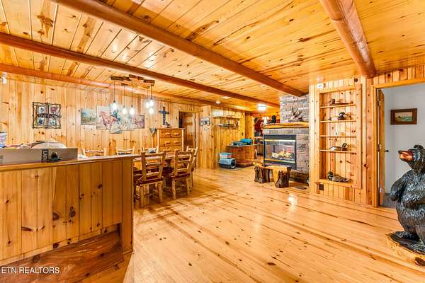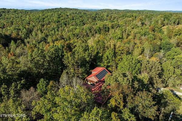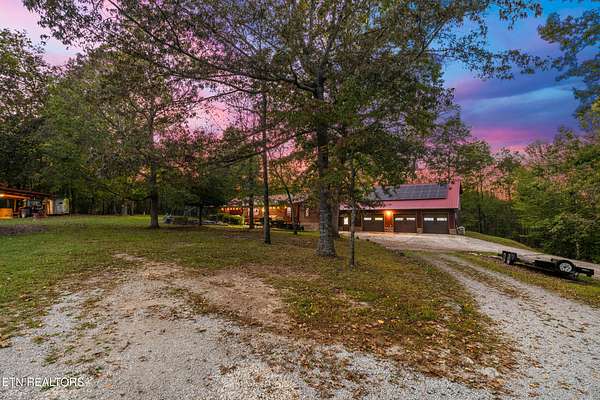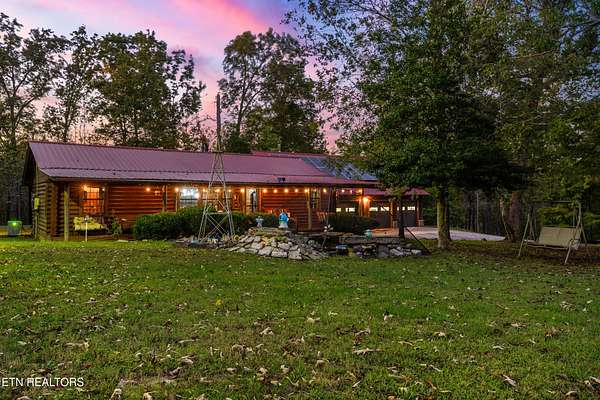 Fiber Optic Now Available! Beautifully renovated true log cabin on 22.38 wooded acres in the peaceful Paint Rock community--Greenbelt eligible! Enjoy privacy in this nature lover's paradise with multiple hiking trails, endless potential for homesteading or gardening, and a spring-fed stocked pond with floating dock. You will have ample space for the animals including a 3 stall barn with tractor shelter & hay storage, 3 cross-fenced pastures with gates, additional pasture with field fencing, chicken coop and a serene koi pond with waterfall. The open-concept, energy efficient cabin features a whole house generator, grid tied solar panels and low E double pane windows. The home's water supply is sourced from a natural spring with whole house water filtration system. The inviting interior welcomes natural light through bay windows, wood accented walls and a stunning three-sided vented propane fireplace. The kitchen offers granite countertops, stainless steel appliances, and a bar area for entertaining. The primary suite includes a tiled walk-in shower, double vanity, and ample space to unwind. Relax outdoors and watch for wildlife on the large covered porch and deck overlooking wooded privacy. Additionally, you will find a dream setup for car enthusiasts, multi-generational living or income producing potential to include an 1,800 sq ft, 3-bay temp controlled garage with heated floors and a full 2-bedroom apartment upstairs! A camper/tiny home hookup site and a heated and cooled 860 sq ft. foam-insulated metal garage/RV parking area completes this one-of-a-kind property. A perfect blend of rustic charm, modern convenience, and serene mountain living. Call today for your private tour!
