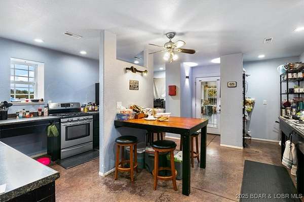 Welcome to this exceptional 43.50-acre property, being sold AS-IS, offering a rare combination of natural beauty, recreation, and functionality. Nestled among rolling hills with breathtaking views, this estate features a spacious 5,600 sq. ft. shouse, complete with a banquet hall ideal for hosting gatherings, events, or large family get-togethers. The property also includes a fully equipped workshop for your projects and a private gun range for recreational use. A peaceful pond enhances the natural charm. For outdoor enthusiasts, the location is just 2 miles from three access points to the Little Niangua River-perfect for fishing, kayaking, and enjoying the great outdoors. Passionate about hunting? This spot is ideal for you. Despite its private, rural setting, it is only 15 minutes from Camdenton, striking the perfect balance between convenience and seclusion. With endless possibilities, this estate is truly a rare gem in the Lake of the Ozarks area. Don't miss your chance! Home being sold "AS-IS".