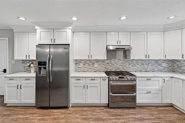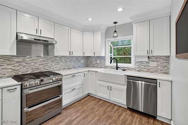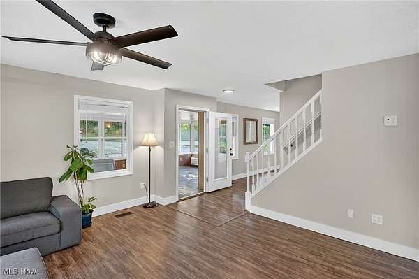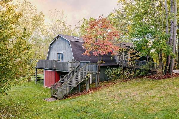 Tucked away on 3.18 private acres along the Boston Heights and Hudson line, this beautifully updated 3-bedroom, 2-bath Cape Cod offers the perfect mix of modern comfort and peaceful country living. Thoughtfully reimagined, the home's open flow features a fully renovated kitchen and lower-level bath, both with sleek quartz countertops and stylish finishes that balance warmth and simplicity. The 12-course walkout basement offers ample space to expand, while large sliding doors open to the surrounding landscape, inviting in natural light and views of the woods and wildlife. Outside is where this property truly shines. A 500-foot private gravel drive leads to a massive 40*72 workshop and garage, complete with an enclosed office and upper storage, plus a 32*72 bank barn with stalls and fenced pasture. Both buildings feature spacious, unfinished upper levels, ready for your creative vision. whether it's a studio, office, or guest space. Backing directly to the Bike & Hike Trail and surrounded by mature trees, this property offers privacy without sacrifice, just minutes from downtown Hudson, Cuyahoga Valley National Park, and major highways. Whether you dream of space to create, work, or simply breathe, this rare retreat offers room to do it all.
