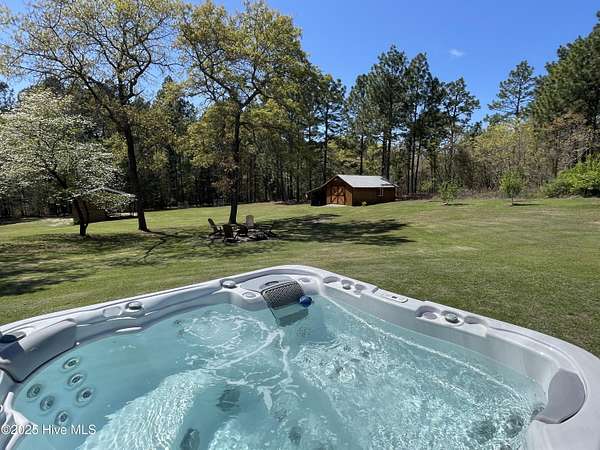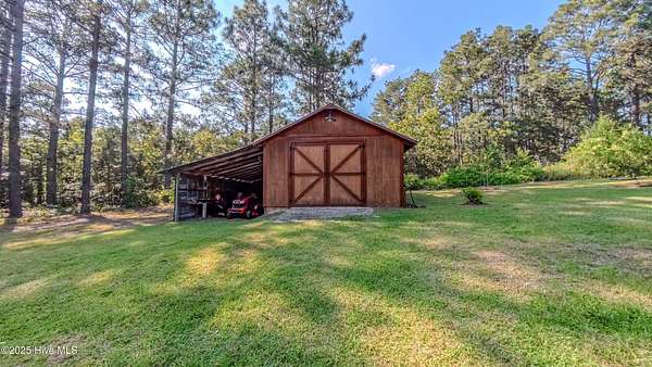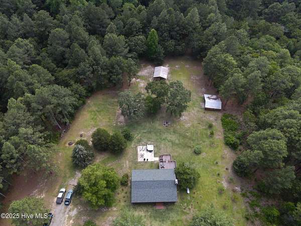 PRICE IMPROVED $110,100! Charming country cedar ranch on nearly 14 acres - private and surrounded by wooded pines, yet just minutes from shopping and only five miles from Pinehurst golf. Located on a quiet street, this home is ideal for those seeking solitude without being remote. Extensive, high-end renovations make the home feel like new. The popular semi-open floor plan features a modern kitchen with a bar and pantry, a great room with a gas-log fireplace and three big bedrooms, two bathrooms-each bedroom with a walk-in closet. The luxurious master suite includes a new walk-in closet and a laundry room. Other highlights include a front porch, two-tier rear deck, hot tub (2023), fire-pit, and a detached shed/shop with electricity, plus an old stable. Upgrades and systems: - Heat pump (7 years old) - New roof (October 2021) - 2022-2023 improvements: interior and exterior paint; new plumbing and wiring; high-end new LVP flooring throughout, new doors, and windows; new back deck; new propane-log fireplace; new kitchen and bathrooms; new tankless water heater; new A/C vents; new gutters with leaf guards - Crawl space encapsulation and dehumidifier - New water filtration system, pressure tank, and water softener - Barn: new facade, windows, and 220V electrical panel and wiring - Stable: new electrical - Well water tested (2021) and sanitized (2024) Horses are welcome with a conditional-use permit from the town of Pinebluff. The new owner may recombine the two parcels and subdivide into up to five total parcels.