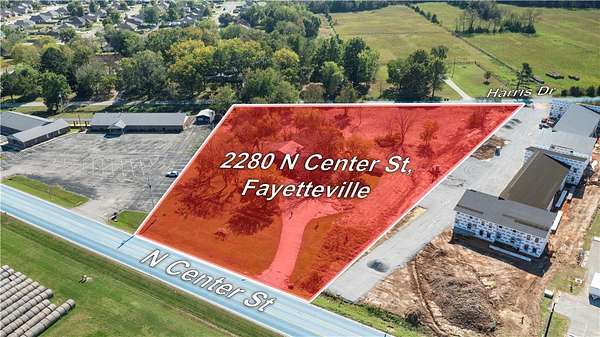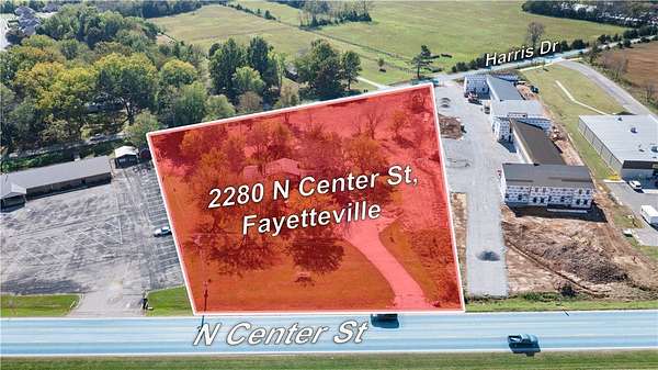 Est $1,968/moExcellent Development Opportunity! 2.5 flat acres with dual road frontage-160' on Hwy 16/N Center St and 445' on Harris Dr-offering great visibility and access. Existing 3-bedroom, 2-bath structure currently operates as an office. The property is ideal for multi-family or commercial development with prime location near schools, businesses, and just minutes from Fayetteville. Endless potential for investors or builders! Also listed as commercial MLS # 1326233 And as land MLS #1326311