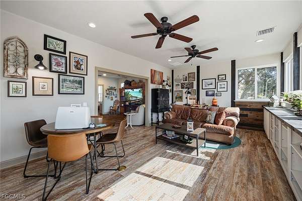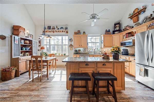 Experience true country living in beautiful Alva with this exceptional multi-generational property featuring a spacious main home and fully equipped guest house on a fully fenced parcel with room to roam. This impressive 4-bedroom, 3.5-bath, two-story residence offers comfortable living and thoughtful design throughout. Inside, you'll find volume ceilings that create a bright, open feel, a well-appointed kitchen with a convenient breakfast bar, and a generous primary suite featuring dual sinks in the master bath. Additional interior highlights include a laundry tub and functional spaces designed for everyday ease. Perfect for extended family, guests, or potential rental income, the separate guest house includes 2 bedrooms, 1 full bath, a full kitchen, a comfortable living area, a charming screened front porch, and an expansive open back porch-ideal for enjoying peaceful Florida evenings. Step outside and enjoy a fantastic patio and backyard entertainment area, perfect for gatherings large or small. The property is fully fenced and equipped for both comfort and self-sufficiency with a water treatment system, propane tank, and whole-house generator. Need space for equipment, hobbies, or animals? Multiple pole barns and an additional outbuilding provide incredible flexibility and storage options. If you're looking for privacy, space, and versatility-all while being within reach of modern conveniences-this unique Alva property offers the perfect blend of comfort and country charm.