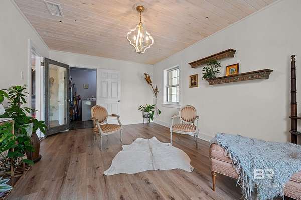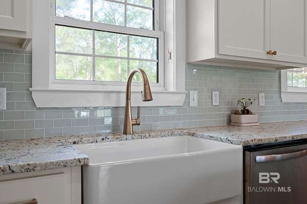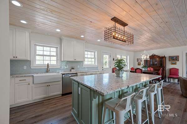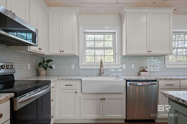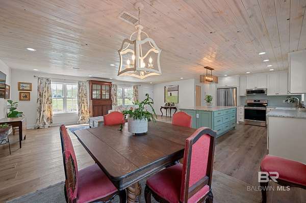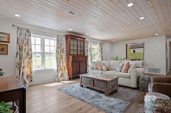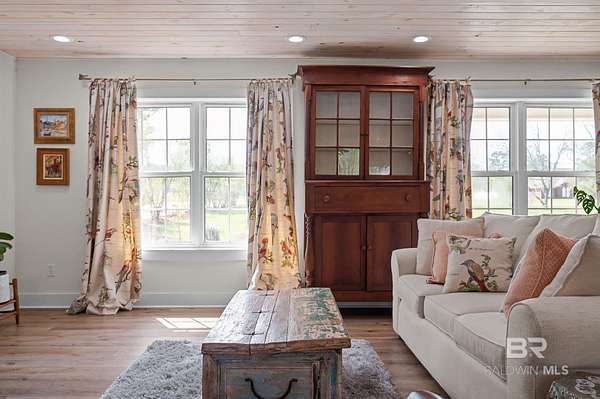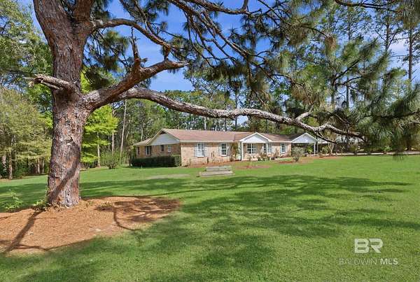 Beautifully renovated riverfront property on approximately 2.3 acres along Fish River, offering privacy, usable waterfront, and a peaceful natural setting just outside Daphne. With no HOA, this property provides the freedom to spread out and enjoy country living while still being conveniently located near shopping, dining, and everyday essentials. Enjoy a sandy beach along the riverbank with space to swim, kayak, or canoe right from your own property.This home has been recently renovated to create a cohesive and inviting interior. Wide plank wood flooring runs throughout, and popcorn ceilings have been removed and replaced with beautiful V-groove ceilings in the kitchen, dining, and living areas, adding warmth and character. Updated lighting throughout these main living spaces includes recessed can lights along with charming fixtures, creating a brighter, more inviting environment. The kitchen has been opened to create a more functional layout with updated custom cabinetry, designer stone countertops, and appliances.The home features an oversized primary suite with a private bath, three additional bedrooms, and a second full bathroom along with generous laundry room.Additional highlights include a spacious deck, double attached carport with storage, separate storage building, a long crepe myrtle lined driveway, and a recently replaced HVAC system.This is rare opportunity to own acreage on Fish River with a sandy beach offering direct water access, privacy, and room to enjoy the outdoors.All information is believed to be accurate but not guaranteed; buyer and buyer’s agent to verify all details deemed important during due diligence. Buyer to verify all information during due diligence.