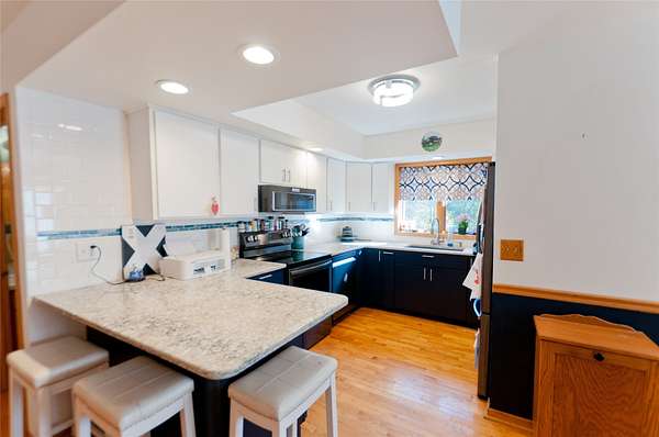 Located just outside Rice Lake in a sought-after neighborhood, this spacious multi-level home offers 3 bedrooms, 3 bathrooms, and sits on 1.58 acres. The layout is ideal for entertaining, featuring a large living room, a generous eat-in kitchen, and a cozy lower-level family room with a natural gas fireplace. Enjoy bug-free relaxation in the screened-in porch, perfect for unwinding with a cocktail or hosting guests. The newly fenced yard adds privacy and is great for pets or outdoor fun. Recent updates include a new roof in 2018 and a high-efficiency Lennox furnace and A/C installed in 2023. With multiple indoor gathering spaces and a peaceful outdoor setting, this home blends comfort, functionality, and charm. Whether you're looking for room to grow or a retreat close to town, this property delivers. Don't miss your chance to own this home in a prime location-schedule your showing today!