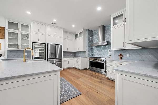 - Built-In Wine Cooler, Chandelier, Decorative Lighting, Double Vanity, Dry Bar, Eat-In Kitchen, Granite Counters, High Speed Internet Available, Kitchen Island, Natural Woodwork, Open Floorplan, Pantry, Vaulted Ceiling(s), Walk-In Closet(s)