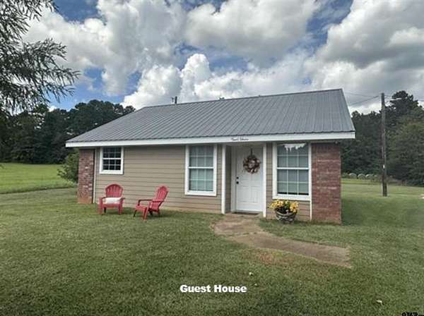 Move-in ready 1,700 sf home with 900 sf guest house on 12.6 acres of hay meadow. Located within 2.5 miles of schools. Main House is brick, 1 1/2 stories which includes 3/4 bedrooms and 2 baths. The open concept features a spacious living room with lots of natural light and a beautiful gas log fireplace. Updated kitchen/breakfast area has spacious quartz countertops, soft close cabinets, and all electric Stainless Steel appliances. All new windows throughout the home provide efficiency while offering views of the meadow from every room. Primary bedroom is spacious. There are 2 full baths. Well-lit upstairs room can be used for extra bedroom or bonus area. Additional features of the home include walk-in pantry/laundry and ceiling fans in all rooms and porches. Guest House is a 1 B / 1 B updated open concept 900 sf home that is move-in ready. It has a large kitchen with DW, lots of counter space and storage. Includes a laundry room and large closet. Living area is a guest friendly space with pleasant views. The bedroom and bath are comfortably sized. It's ideal for extended family/guests, rental income, home office/studio, or home school. Outdoors you'll notice beautiful landscaping, large porches/patios with fans, oversize carport, pool & decking, 10 x 14 well-equipped greenhouse, 8 x10 tool garage, and a large metal outbuilding for tractors/mowers.