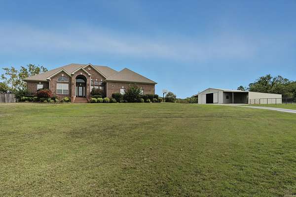Welcome to 2281 Lookout Mountain Rd in Benton, a rare opportunity to own a private acreage property in the Benton School District offering 3 bedrooms, 2.5 bathrooms, and 2,633 square feet on 3.32 usable acres. This home features a split floor plan with a spacious living room with tray ceiling and fireplace, a dedicated home office with built-ins, and a functional kitchen with ample cabinetry, pantry storage, and breakfast bar seating that opens to the main living areas. The primary suite offers a private bath and walk-in closet, with well-sized secondary bedrooms for family or guests. Outside, enjoy an in-ground pool, covered patio, and a 3-stall barn with tack and feed room, hay storage, workshop space, and fenced pasture ideal for horses or livestock. ADDITIONAL ACREAGE IS AVAILABLE for purchase, offering expanded privacy or future use. With no HOA, room to grow, and a peaceful setting just minutes from Benton amenities, this property offers a rare blend of space, functionality, and lifestyle.