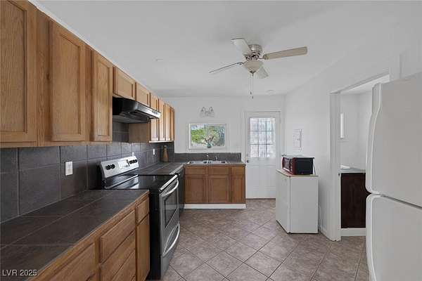 Welcome to your 5-acre equestrian dream property - a rare find with two homes and endless potential! The renovated 3BD/2BA main house pairs beautifully with a 1BD/1BA guest house, perfect for family or on-site help. Designed for horse lovers, enjoy a lighted 220'x115' arena with roping boxes and chutes, 5-stall barn with power and water, mare motel, round pen, obstacle course, 4-horse hot walker, and two grass turnouts. There's ample trailer parking, a 24'x36' garage/shop, and direct BLM access just two blocks away for trail riding or off-roading. Soak in breathtaking mountain sunrises and golden desert sunsets from your own private oasis. Whether you're riding, training, or just craving open space, this estate offers the perfect blend of comfort, freedom, and the rural lifestyle you've always wanted.