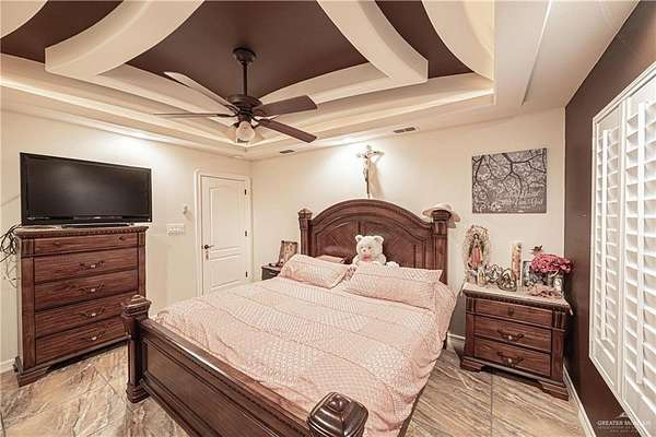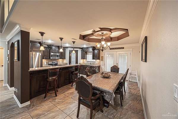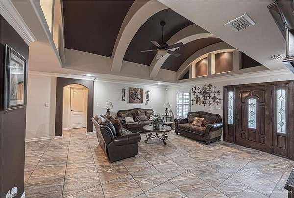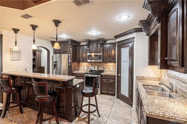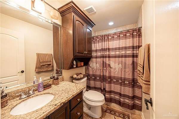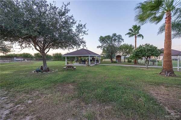 Beautiful family-style ranch home nestled on 5.04 acres in Edinburg, TX. Built in 2014, this well-maintained 3-bedroom, 2-bath residence blends modern comfort with rustic charm. The open-concept kitchen features elegant granite countertops, perfect for everyday meals or family gatherings. Outside, enjoy a spacious carport for ample parking and a massive rear warehouse-ideal for storage, a workshop, or hobby space. The expansive porch offers the perfect spot to relax, complete with two half baths for added convenience when entertaining guests. With wide-open space, fresh air, and a serene setting, this property delivers true ranch-style living while remaining close to city amenities. A must-see for those seeking both comfort and tranquility!