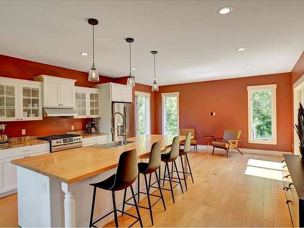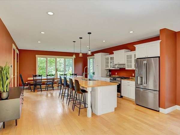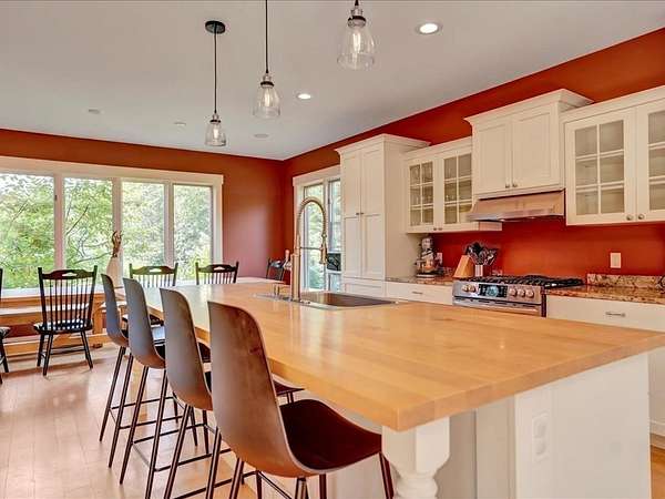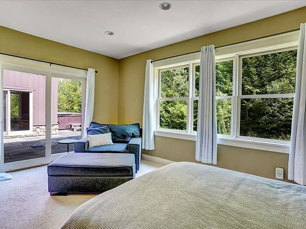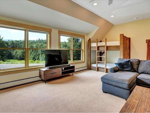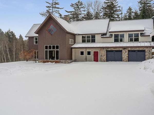 Discover the perfect blend of country living and convenient access to all that Stowe has to offer. This contemporary home, built in 2007, is ideally situated on a country road, providing privacy while remaining incredibly convenient. You'll be just seven minutes from Mountain Road and a mere 17 minutes from Stowe Mountain Resort. For outdoor enthusiasts, the location is a dream, offering excellent proximity to Stowe's renowned backcountry. This spacious 3,461-square-foot home sits on 2.2 acres, featuring a beautiful brook and stunning mountain views. The interior is designed for comfort and modern living, with vaulted ceilings and a dramatic floor-to-ceiling stone fireplace creating a striking focal point. The first-floor also has a bedroom and bathroom for easy accessibility. The heart of the home is the chef's kitchen, perfect for culinary adventures with a few friends or a large group. Step outside to a beautiful, backyard stone patio where you can relax and unwind in the hot tub while taking in the serene surroundings. The luxurious primary suite is a true sanctuary, boasting breathtaking mountain views, a spacious double shower, large soaking tub, and 2 separate walk-in closets. This home offers the best of both worlds - a peaceful, private escape and quick access to Stowe's world-class recreation and amenities.