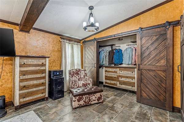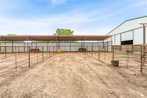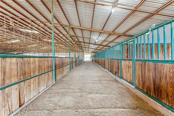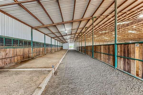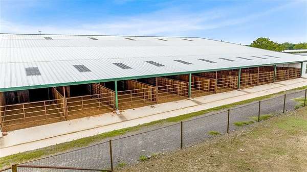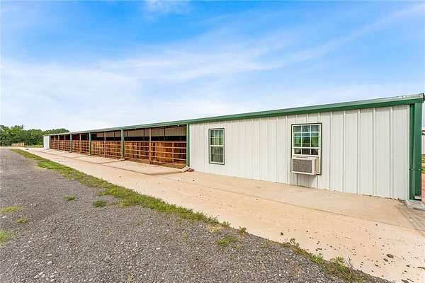 Well-maintained horse facility. Arena floor is 170x90, and the entire building is 170x170 including 10 show stalls with covered runs that have a cut gate creating 20 covered stalls. You will find two storage rooms and a bathroom in the northwest corner of the building, as well as a heated and cooled dedicated wash room and tack room combo to create a highly-functional space. Fenced and cross fenced to create several turn outs, with a new 275 x 160 roping arena and 275 x 30 calf lane with return alley & stripping chute. 11 oversized pens with sheds conveniently located behind the arena with automatic waterers and oversized feed bunks. This facility has been meticulously planned to create the ultimate property for avid horse people. Only one hour to Will Rogers and 45 minutes to Weatherford. a Very nice 1 bedroom, 1 bath apartment built in 2023 is in the main structure.