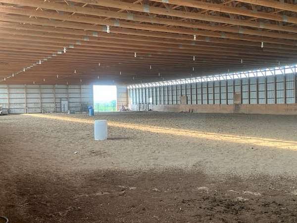 If you love horses, and you need an arena, this place is for you. Maybe you don't have horses but need storage space. If this is the case this one's for you. The arena is 118'x200'. That is 23,600 square feet. I did some rough calculations and this would hold 1180 round bales of hay based on a single layer.