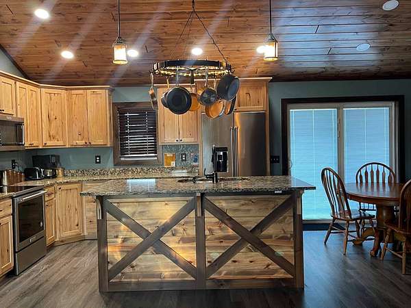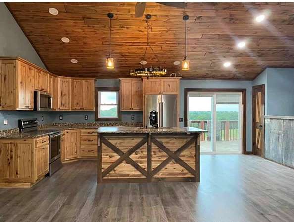 Built in 2008, and remodeled in the last 6 years. The house consists of 5 bedrooms,(2 upstairs and 3 downstairs) and 3 bathrooms,(2 upstairs and 1 downstairs). Check out the pictures and videos to see more details. Plank flooring, custom hickory cabinets, hard surface kitchen countertops, Kitchen Aid appliances, barn sliding doors, tile showers, and the list goes on.