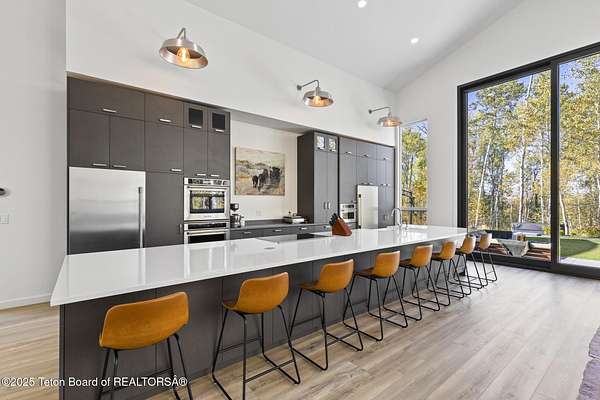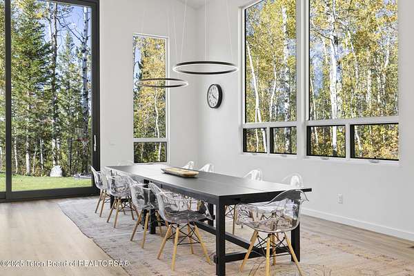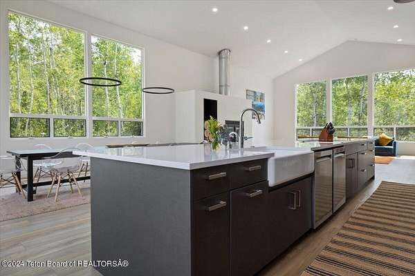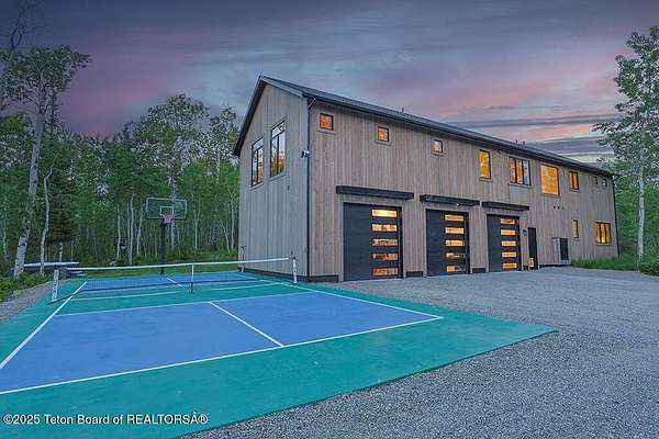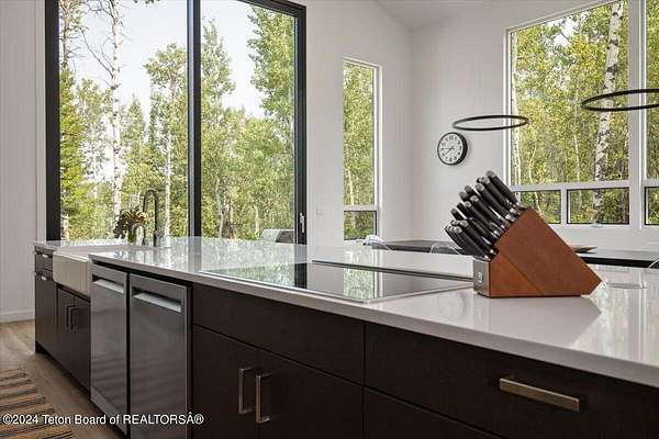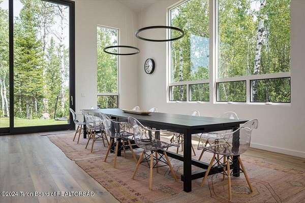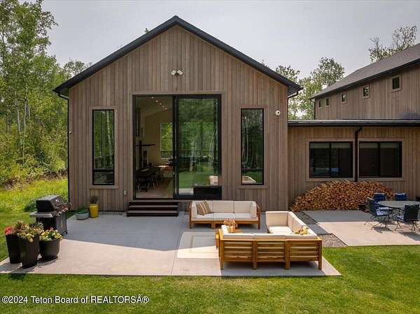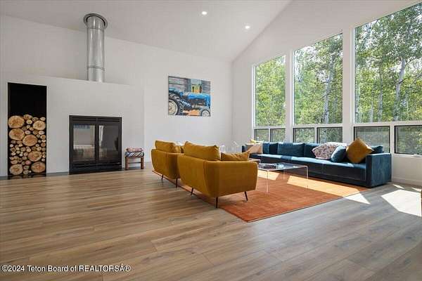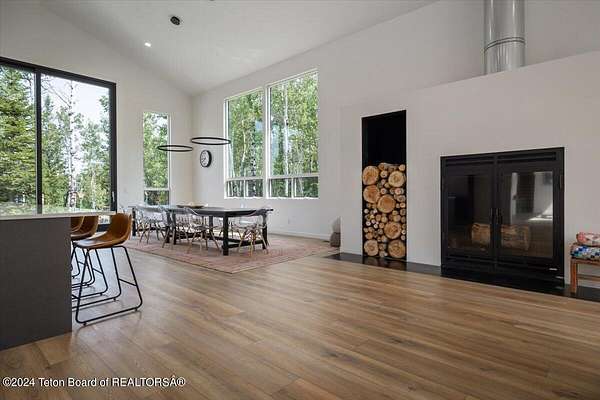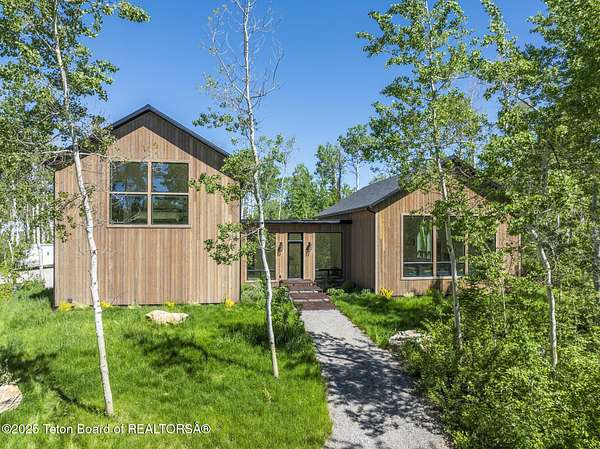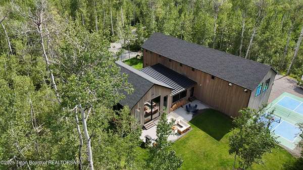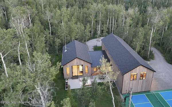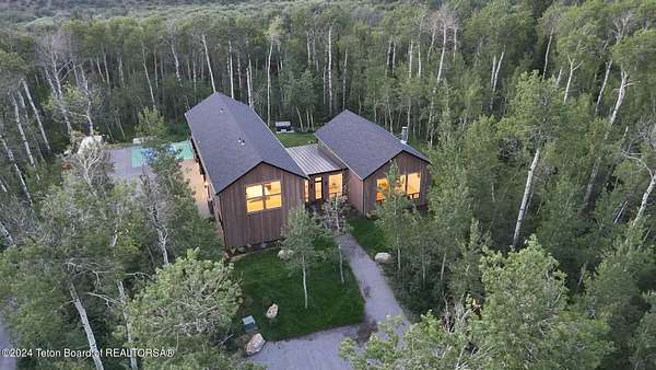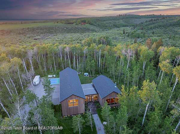 Welcome home to this exquisite modern farmhouse nestled amongst old growth Aspen Forest at Galloway Hills. Experience the perfect blend of contemporary style and natural beauty in this one-of-a-kind Teton Valley property. Sitting on a serene 3-acre parcel, this peaceful retreat offers unparalleled privacy and character. Step inside to a bright, open floor plan that seamlessly blends indoor and outdoor living. Expansive windows, punctuated by a tremendous 14ft sliding glass door, absolutely flood the space with natural light and views of Aspen forest from every window. Designed to a grand scale, huge spaces, high ceilings, over height doors and windows overcome the visitor at each turn. Finished to suit the most discriminating Buyer, mountain luxury abounds throughout ...see ''More'' Each of 5 spacious Bedrooms is suited with a large Bath featuring impressive solid surface tile showers, expansive Chefs Kitchen with induction range, double oven, full size standing Refrigerator and Freezer, 2 Dishwashers, 20ft Kitchen Island, 3 complete Laundry Stations, high fficiency construction with super high efficiency insulation in roof, walls, floor and crawl space (see spec sheet in Documents for more on construction and finish), huge 3 bay garage with over height doors, storage and workspace, wonderfully landscaped outdoor spaces with large patio for outdoor living and dining, hot tub, pickleball/sport court, in ground trampoline with LED lights, Two 1000gal propane tanks, plenty of room to build a barn/shop and/or guest home, the list goes on. Galloway Hills is wonderfully located adjacent to the North and South Leigh trail network offering immediate access to National Forest Wilderness and abundant wildlife, steps to Stateline Rd for short cut access to Grand Targhee Mountain Resort, 10 minutes from Driggs for shopping, restaurants, amenities and services and is conveniently located to all of the other amenities and recreational opportunities that Teton Valley has to offer.