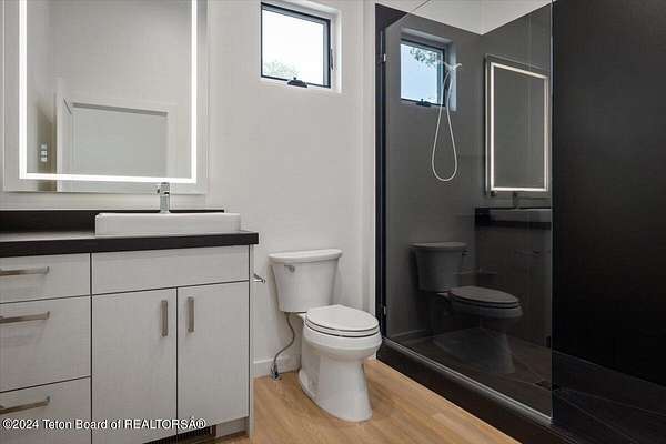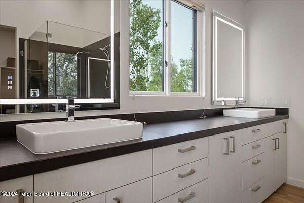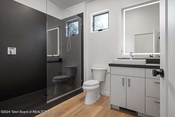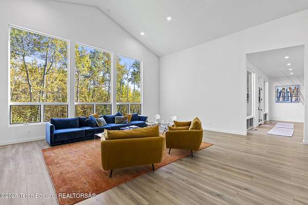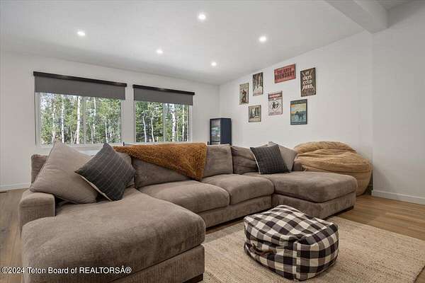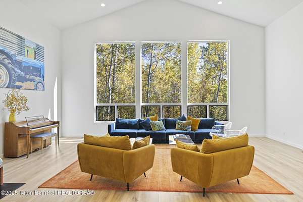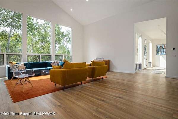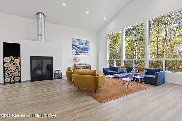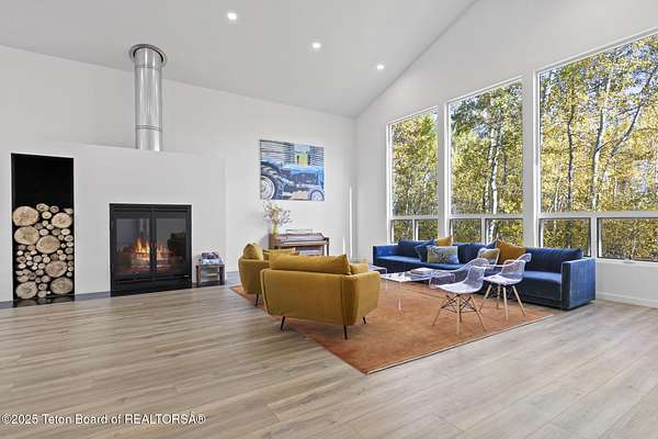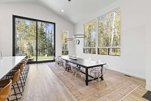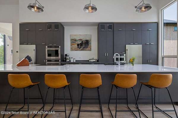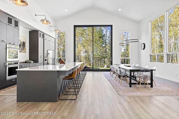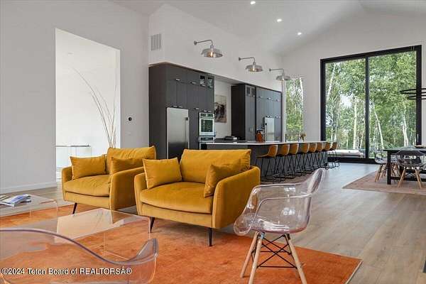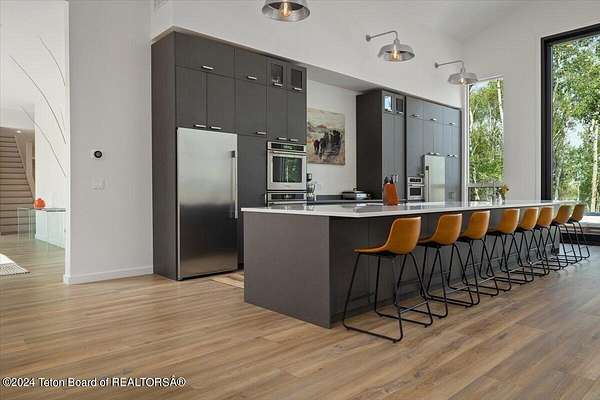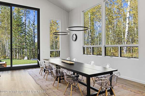 Welcome home to this exquisite modern farmhouse nestled amongst old growth Aspen Forest at Galloway Hills. Experience the perfect blend of contemporary style and natural beauty in this one-of-a-kind Teton Valley property. Sitting on a serene 3-acre parcel, this peaceful retreat offers unparalleled privacy and character. Step inside to a bright, open floor plan that seamlessly blends indoor and outdoor living. Expansive windows, punctuated by a tremendous 14ft sliding glass door, absolutely flood the space with natural light and views of Aspen forest from every window. Designed to a grand scale, huge spaces, high ceilings, over height doors and windows overcome the visitor at each turn. Finished to suit the most discriminating Buyer, mountain luxury abounds throughout ...see ''More'' Each of 5 spacious Bedrooms is suited with a large Bath featuring impressive solid surface tile showers, expansive Chefs Kitchen with induction range, double oven, full size standing Refrigerator and Freezer, 2 Dishwashers, 20ft Kitchen Island, 3 complete Laundry Stations, high fficiency construction with super high efficiency insulation in roof, walls, floor and crawl space (see spec sheet in Documents for more on construction and finish), huge 3 bay garage with over height doors, storage and workspace, wonderfully landscaped outdoor spaces with large patio for outdoor living and dining, hot tub, pickleball/sport court, in ground trampoline with LED lights, Two 1000gal propane tanks, plenty of room to build a barn/shop and/or guest home, the list goes on. Galloway Hills is wonderfully located adjacent to the North and South Leigh trail network offering immediate access to National Forest Wilderness and abundant wildlife, steps to Stateline Rd for short cut access to Grand Targhee Mountain Resort, 10 minutes from Driggs for shopping, restaurants, amenities and services and is conveniently located to all of the other amenities and recreational opportunities that Teton Valley has to offer.