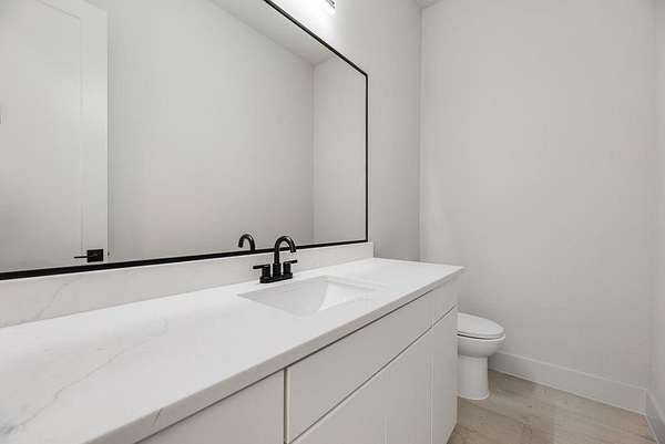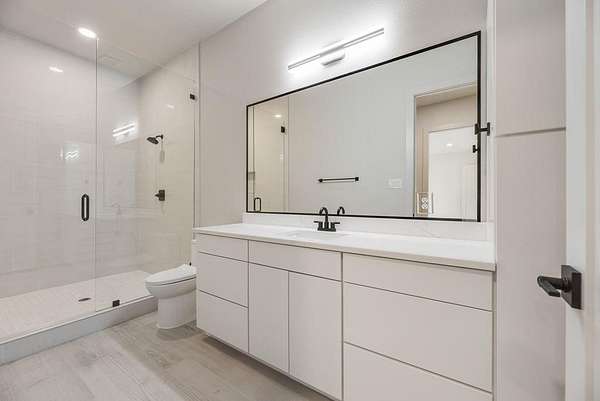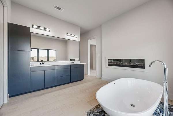 The primary suite is a true sanctuary, offering a spa-inspired bath with a freestanding soaking tub, oversized walk-in shower, large vanity, and a designer boutique-style closet built for luxury living.
