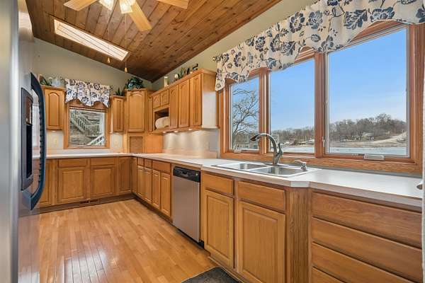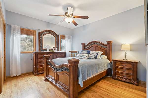 Iconic Lake Delhi home tucked into a beautiful 1.5 acer timber setting! Stunning sun room with sweeping Lake Views. Private bath for each bedroom. Properties like this don't come up very often don't let this get away..... get away