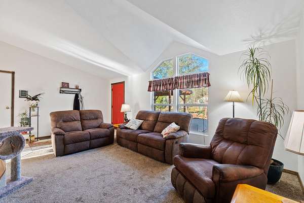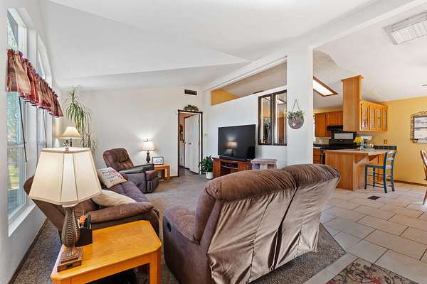 At 22848 Elk Trail East, Redding, CA, USA, an inviting home awaits, thoughtfully prepared for those seeking a tranquil and fulfilling living experience. This residential property stands ready for immediate enjoyment, offering a harmonious blend of comfort and natural beauty. The living room provides an expansive atmosphere for daily enjoyment, enhanced by its high ceiling and vaulted ceiling, creating an airy and welcoming space for relaxation and gathering. The kitchen serves as a bright and practical space, featuring a convenient kitchen bar and a functional kitchen peninsula, complemented by stylish shaker cabinets. Natural illumination streams through the skylight, brightening culinary endeavors and making the area feel wonderfully open.. Beyond the interior, the property extends its allure outdoors with a welcoming porch, an inviting outdoor dining area, and a relaxing patio, perfect for enjoying the surroundings. A practical shed provides additional utility and storage solutions, while a spacious deck offers opportunities to appreciate the serene woods view and majestic mountain view. The secure gated driveway, leading to a distinctive circular driveway, provides both privacy and ease of access for arrivals and departures. Furthermore, a dedicated laundry room enhances the home's practical amenities, contributing to an effortless routine. This residential property offers a harmonious blend of refined interior spaces and captivating outdoor settings, promising a lifestyle of comfort and natural beauty.