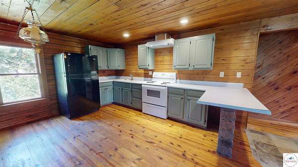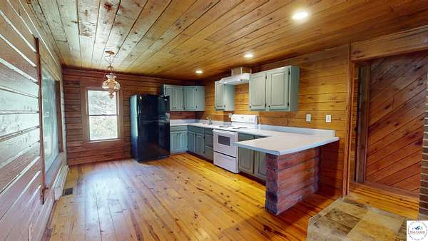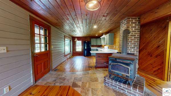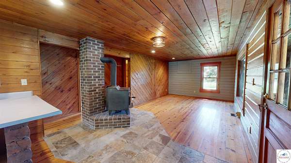This charming 2-bedroom, 1-bath log cabin offers the perfect blend of rustic charm and peaceful country living--sitting on 1.88 m/l acres of open space and natural beauty. From the moment you arrive, you'll love the cozy feel, complete with a stone walkway leading to a covered front porch--ideal for morning coffee or quiet evenings. Step inside to an open-concept living and kitchen area featuring a wood-burning stove, large picture windows, and tons of natural light. The spacious kitchen includes some appliances and offers great functionality for everyday living or weekend getaways. The home includes two comfortable bedrooms, a full bathroom with a walk-in shower, and a convenient main floor laundry area. Outside, enjoy the extra storage of an outbuilding/shed, covered parking with a carport, and room to spread out and enjoy the peaceful setting. Whether you're looking for a quiet retreat, a weekend getaway, or a place to call home--this log cabin has so much to offer.
