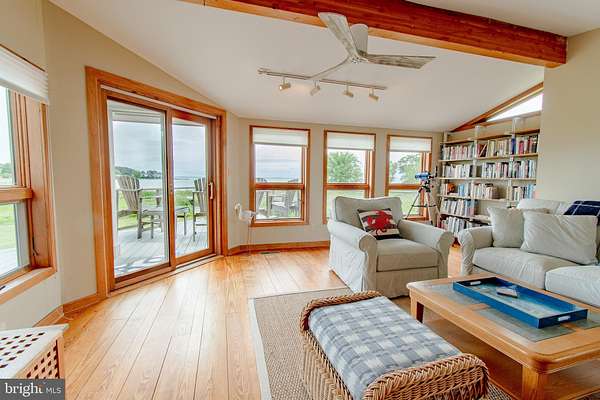 Welcome to this architecturally designed waterfront retreat, thoughtfully created to capture broad, breathtaking views and harmonize with its natural surroundings. Set in a quiet village near historic St. Michaels, this home offers a rare blend of tranquility, comfort, and convenience-just minutes from a public park and landing. Inside, the home features 3 spacious bedrooms, an office, and multiple living areas perfect for both everyday living and entertaining. Floor-to-ceiling windows bathe the interior in natural light and frame sweeping water views. Rich wood floors, a cozy fireplace, and a fabulous kitchen enhance the warm, welcoming atmosphere. The layout offers abundant storage throughout, making it as practical as it is beautiful. Step outside to a peaceful, private setting complete with a waterside deck, patio, and gazebo-ideal for outdoor dining, relaxing, or simply soaking in the natural beauty. A private pier allows you to enjoy life on the water, while a detached shed provides even more storage or workspace. Nature lovers will be right at home with regular visits from eagles, osprey, shorebirds, foxes, deer, geese, and more. Whether you're looking for a full-time residence or a weekend getaway, this extraordinary home delivers a waterfront lifestyle like no other.