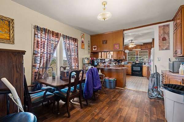 The property includes an existing home being sold as is, offering generous living space and the chance to update or reimagine it to suit your vision. Surrounding the home is a fenced yard, perfect for pets or outdoor enjoyment. In addition, there are four separate outbuildings on the property that can be used as a barn, storage sheds, workshops, or creatively repurposed for a variety of needs.