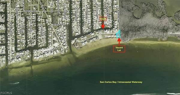 This is one of the few and least expensive bayfront lots left on Pine Island to build your dream home. The stunning, unobstructed views of San Carlos Bay, Sanibel, and the Intracoastal Waterway (ICW) boat traffic will keep you occupied for hours. Enjoy the breathtaking sunrise and sunset views with the southern exposure, while the Ospreys and Bald Eagles fly overhead and the dolphins and manatees play in your backyard. With the quick access to the ICW, Gulf of Mexico, Sanibel, Captiva, Ft. Myers Beach, and all of the Outer Islands of Lee County, you can be fishing in mere minutes. Imagine waking up to the tropical breezes, gathering your fishing gear to head to your private dock on the canal side for some of the best fishing in all of SW Florida. With preserve land on one side, there is lots of privacy in this gated boating community. The HOA fees are low at only $600/year.