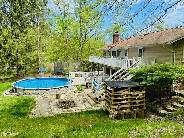 Spacious 4+ Bedroom, 2.5 Bath home on over 2 private acres in desirable Willoughby Hills. This home offers an open floor plan with walls of windows and a large eat in kitchen featuring granite countertops, a center island, ample cabinet space, and all appliances included. The dining room flows into the open living room with a wood-burning fireplace. The primary suite includes two closets (one walk-in) and ensuite with a tiled shower, jetted tub, double sinks, and LVT flooring. Two additional bedrooms on the main floor provide convenient access for family living. The finished lower level is ideal for teens, guests, or an in-law suite, featuring a spacious recreation room, bedroom, office/flex space, laundry area, bar/countertop, cabinets and a full bath. Outdoor living is enhanced with an above-ground pool and deck, flagstone patio, full rear deck, extra gravel drive for additional parking and a generous yard to enjoy. Car enthusiasts and hobbyists will appreciate the 2-car attached garage with a gas heater, plus a 2-car detached garage and an extra concrete pad-perfect for vehicles, boats, or additional storage. Set back from the road, this home offers privacy, peace, and quiet while remaining close to everything historic downtown Willoughby has to offer as well as easy access to the highway.