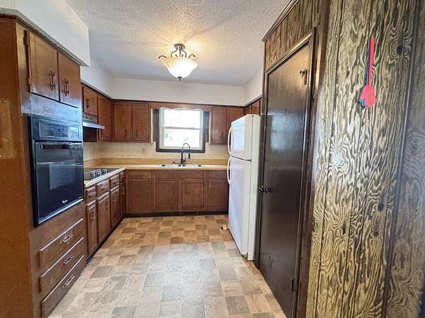 Charming Move-In Ready Home w/Barn! Situated on 2.8 mostly level lot with a gentle slope toward the back, offering plenty of open space. A circular driveway wraps behind the home, providing easy access and convenient parking. The main level features 3 bedrooms and 1 full bath, along with a spacious country-style eat-in kitchen complete with built-in stove, built-in range, and refrigerator that will convey with the property. The living room provides a comfortable gathering space, and much of the home features brand new laminate flooring. A full unfinished basement offers additional storage and expansion potential and already includes a bathroom with a tub/shower combo. The basement also houses a wood-burning furnace & newer hot water heater. Outside, the property is well suited for those wanting extra space or hobby farm potential. You'll find an 8-stall barn with two additional storage rooms featuring concrete floors, plus covered overhangs on both sides for equipment, hay, or storage.