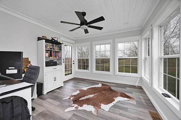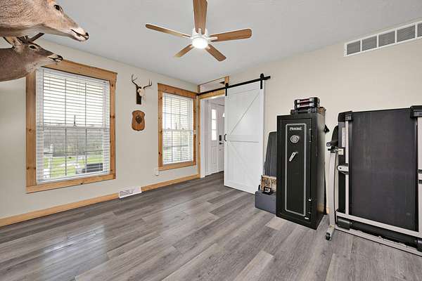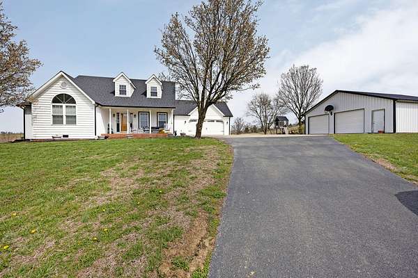 This beautiful 3-bedroom, 3-bath home offers approximately 2,000 sq ft of well designed living space, perfectly situated on 10 acres of picturesque land ideal for farming, recreation, or simply enjoying peaceful country living. Inside, you'll find a spacious layout featuring a versatile 12x12 room that can be used as an office, dining room, or study, along with a large 4x9 granite kitchen island perfect for gathering. The kitchen is well equipped with a double oven, making it ideal for hosting and everyday convenience. The cozy living room features a fireplace and smart home capabilities, including a smart thermostat, garage doors, and fireplace controls, creating a comfortable and modern space to unwind. There's also a bonus room that could easily serve as a 4th bedroom. The primary suite offers not one, but two walk-in closets--an impressive 8x16 and an additional 6x8--providing exceptional storage. A dedicated laundry and mud room add even more functionality to the home. Major updates have already been completed, including new exterior vinyl siding (2024), a new roof with 30-year dimensional shingles (2024), and an updated HVAC system (2023), offering peace of mind for years to come. Outside, a 32x32 detached garage built in 2017 provides excellent space for vehicles, equipment, or a workshop. The property includes a total of 4 garage spaces, with 2 attached and 2 in the detached garage. The land is well suited for agricultural use and features a livestock self-feeding water trough already in place. Take in the breathtaking views while enjoying the privacy, functionality, and flexibility this property has to offer.
