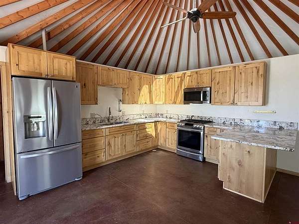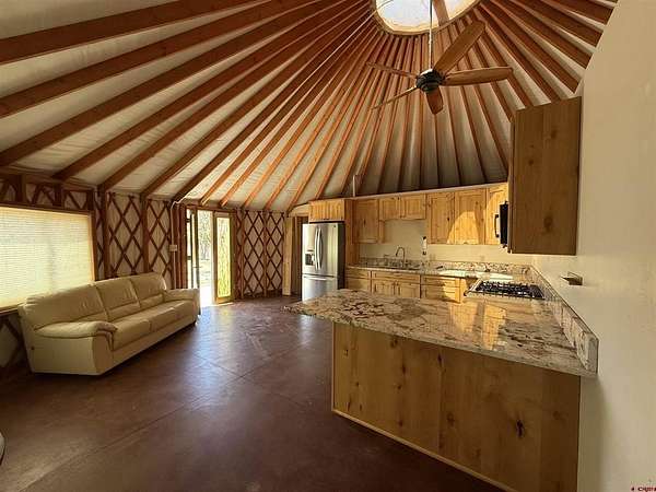 Carrie Summers, Colorado Ranch and Home Realty, C:: 970-759-2540, MancosHomes@gmail.com, www.coloradoranchandhome.com: A rare 38.35 acre compound and agri-business asset! This extraordinary property is engineered for commercial use in Agriculture, Aquaculture, or Multi-Unit Residential/Hospitality. The expansive infrastructure is anchored by an enormous 10,000-square-foot greenhouse with a 75,000-gallon rain catchment and fish-farm system, a Growing Spaces dome, and a vineyard. The property boasts valuable 43 acre-feet of water rights and three stocked ponds, guaranteeing extensive water resources for year-round potential. Versatility is key with three separate, high-quality residences: a beautifully remodeled stucco main home (3-bed/2-bath), a well-appointed living space above the detached garage, and a yurt with radiant heat and granite finishes. Additional assets include a spacious shop, perfect for any project. The main home features post-and-beam construction, granite counters, and a private master suite. Experience unparalleled privacy and freedom with no HOA or covenants and direct access to hundreds of acres of public land