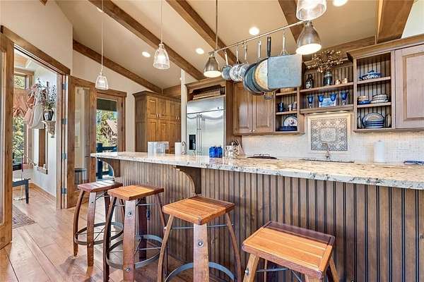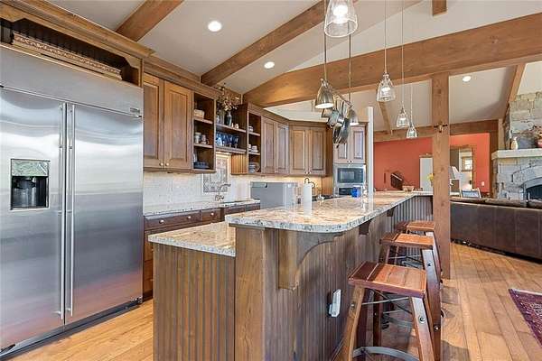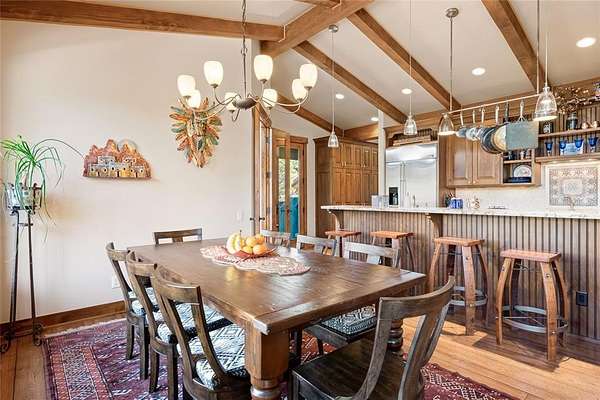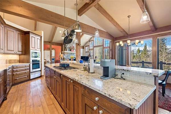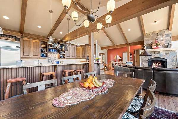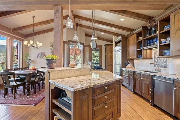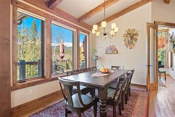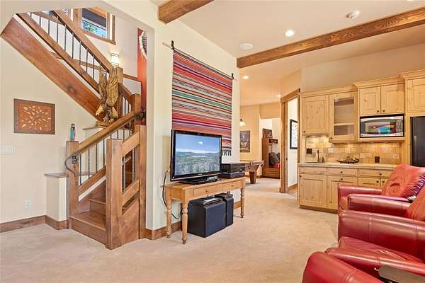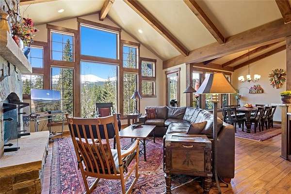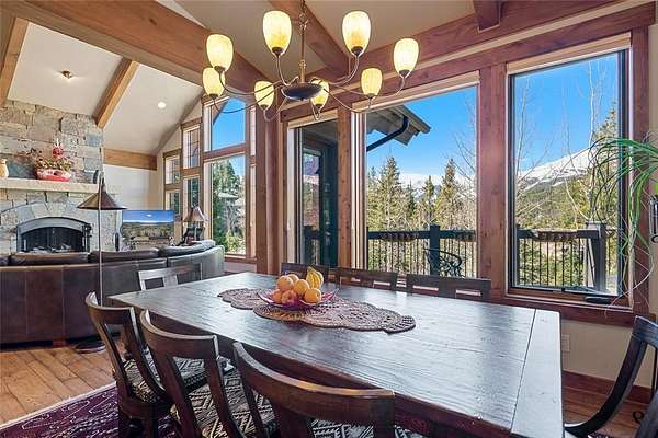 Situated in the prestigious Highlands at Breckenridge, this exceptional mountain residence offers an unparalleled alpine lifestyle from a private and quiet 1.7 acre setting. Timeless design and meticulous craftsmanship are immediately evident from the moment you enter, creating a warm yet sophisticated atmosphere throughout. The expansive great room serves as the heart of the home, anchored by a fireplace that invites cozy evenings after a day of adventure. Soaring panoramic windows frame breathtaking views of the Ten-Mile Range and fill the space with natural light while custom lighting highlights the home’s refined details. Designed for both everyday living and effortless entertaining, the spacious chef’s kitchen features top-of-the-line appliances, granite countertops, and custom cabinetry. Generous bar seating and an open flow into the dining and living areas make hosting family and friends seamless. The primary suite is a private retreat, offering stunning mountain views and a luxurious five-piece en-suite bath – perfect for unwinding in comfort. Three additional bedrooms, each with thier own en-suite bath, provide exceptional privacy and convenience for guests and family members alike. Multiple dedicated spaces enhance the home’s versatility, including an office adjacent to the primary suite, a craft & piano room just off the kitchen, and a quiet lower-level library. The lower-level family room is complete with a spacious media area, billiards space, and wet bar. Outdoor living is equally impressive with a generous deck and patio that capture sweeping views of the Ten-Mile Range and Ski Area, creating the perfect setting for al fresco dining in the crisp mountain air. The three-car garage offers ample room for both vehicles and year-round adventure essentials. Ideally located within the subdivision, this residence provides convenient access to the shopping, dining, and historic charm of Main Street, as well as world-class skiing at Breckenridge Ski Area.