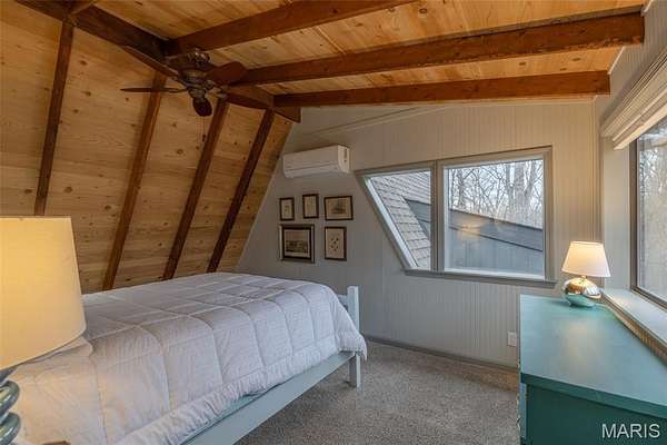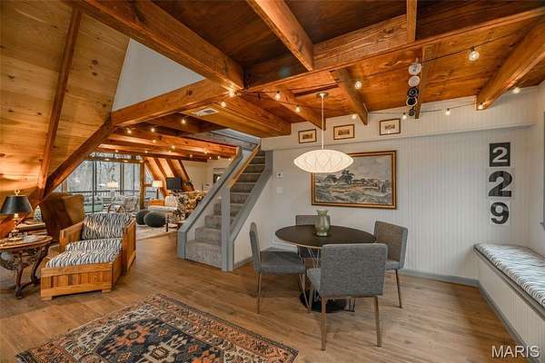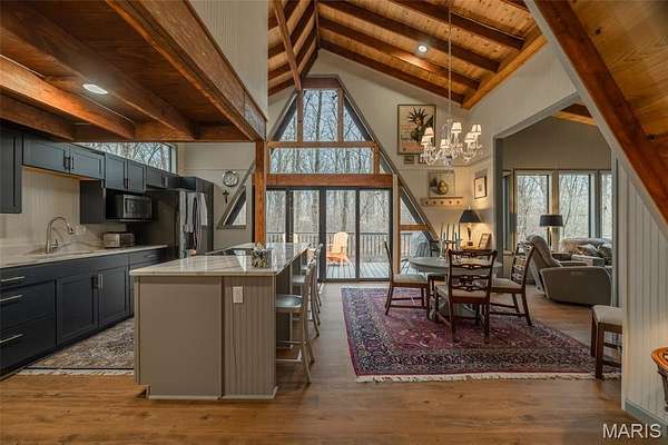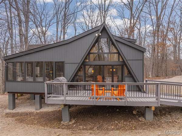 Originally built in 1978, this classic A-Frame chalet sits on over four acres of beautiful Missouri hardwood forest at Innsbrook. Aside from a small bedroom addition and regular maintenance, the property remained largely in its original condition until 2022, when the current owner undertook an extensive renovation and reimagining of the home. With a background in architecture and the expertise of the Innsbrook Construction Department, the vision was clear: preserve the classic woodsy A-Frame character that defines Innsbrook while thoughtfully refining and enhancing it for modern comfort.