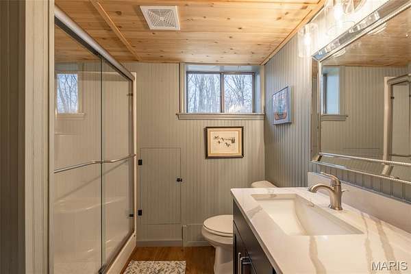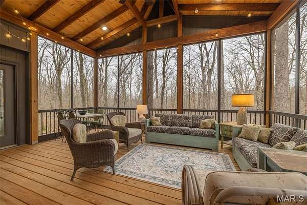 The result is a stunning transformation. Elements of the original chalet were carefully preserved to honor its design, while nearly every inch of the home was improved, expanded, or upgraded. A major highlight of the remodel is the 18’ x 14’ room addition off the back of the chalet, which extends beyond the original living room and connects seamlessly to the deck through a full-view door. This wonderful sunroom features walls of windows and an electric fireplace, creating the perfect year-round retreat. The kitchen was relocated and beautifully finished with custom cabinetry, Cambria countertops, a large island, stainless steel appliances, and plenty of space for gathering and meal preparation. Just nearby, a cozy dining nook with built-in bench seating creates a warm and inviting spot for morning coffee or casual meals. The original A-Frame living room remains a centerpiece of the home, preserving its classic vaulted design and cozy charm. The large screened porch offers tall ceilings, a ceiling fan, and peaceful views of the surrounding woods—an ideal place to relax and enjoy the outdoors. The chalet features four bedrooms in total, with two comfortable bedrooms located on the main level and two additional private bedrooms upstairs, each with its own unique character and cozy atmosphere. Both bathrooms—one on each level—have been completely remodeled or built new with new showers, vanities, and fixtures, complemented by rustic cedar finishes that maintain the home’s natural feel. Beyond the interior updates, the home received extensive exterior upgrades including new siding and roof, windows, insulation, updated electrical, new HVAC systems, and foam insulation beneath the chalet to improve efficiency. Mini-split systems were also added for additional comfort. Step outside and enjoy the beauty of the property’s wooded setting. Perched atop a hill, the chalet offers wonderful seasonal views. In winter, the trees open up for expansive scenery, while in summer the lush canopy creates a peaceful, private retreat. Follow the path down to the firepit area, perfect for gathering with friends for s’mores or evening drinks under the stars. The spacious deck is also a great place to cook outdoors, complete with a Traeger grill. Located in a convenient area within Innsbrook, the property offers easy access to the gate as well as nearby amenities including the horse stables, library, pool, and fitness center. This chalet truly has a one-of-a-kind feel that is rarely found. The property is being offered mostly furnished (with a few exclusions) and is ready to enjoy immediately. As an Innsbrook recreational property, it is intended for second-home use only and is not eligible for or rental. Come see this chalet today!