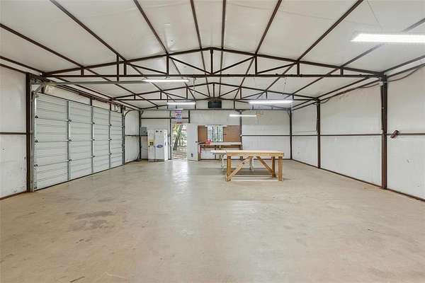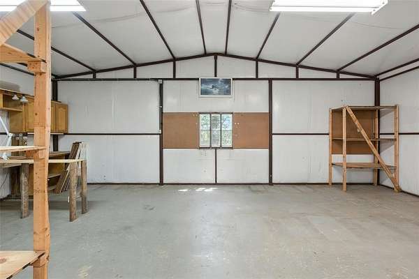 A large 50 x 30 workshop, equipped with electricity, a 50 amp RV hookup, and a 250-volt plug, offers abundant space for hobbies, projects, and storage--ideal for lawn equipment or even a boat.