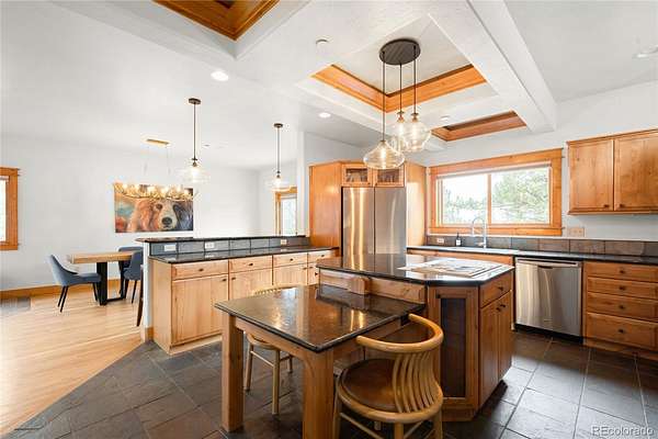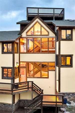 Mountain living reaches new heights in this exceptional Lions Head Ranch residence. Perfectly situated on a serene, tree-filled two-acre lot within a private gated community, this home offers panoramic 360-degree views from its expansive rooftop deck. Designed for both comfort and grandeur, the interior features a sun-soaked open layout with beautiful hardwood flooring and outdoor connectivity to a wraparound porch. A gorgeous chef’s kitchen boasts granite countertops, generous cabinetry, a center island and double ovens. The main living area showcases soaring ceilings, walls of windows and a stone fireplace that frames the surrounding landscape. The primary suite is tucked on its own floor for ultimate privacy, featuring a luxurious five-piece bath, a walk-in closet and direct rooftop deck access. Additional highlights include new carpeting, a dedicated home office and a three-car attached garage. Residents enjoy peaceful seclusion with easy access to Highway 285, skiing and Denver.