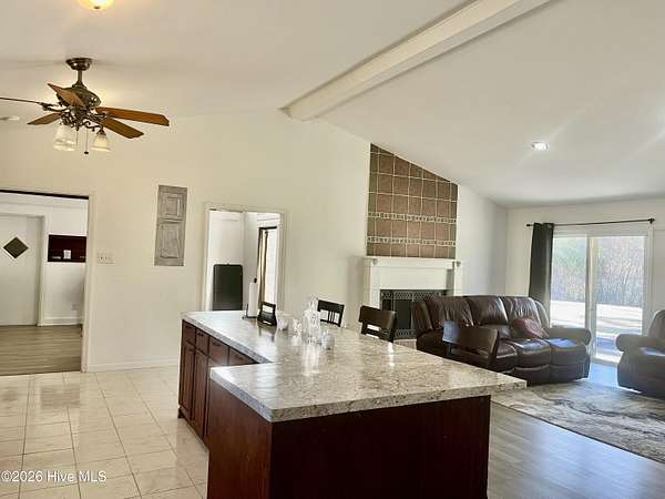- Blinds/Shades, Ceiling Fan(s), Entrance Foyer, High Ceilings, Kitchen Island, Master Downstairs, Pantry, Vaulted Ceiling(s)