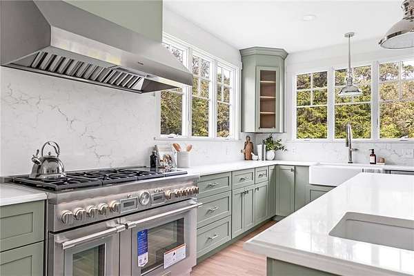 Summerhouse is a private, level, quiet 11.64 ac. property w/two shingle style buildings. 1.) A 3,091 SF main fully remodeled home. Step up on Rosewood decking and enter through a brand-new lacquered hemlock door w/ nickel hardware. New kitchen incl. Thermador Grand Pro appliances, farm sink, oversized island, polished nickel fixtures, lighting, 2 sided fireplace, office, den & refinished maple floors. Upstairs 4 bedrooms; 3 full baths. Prime bath features heated marble slab floors w/ Mokleba soaking tub & walk-in shower w/polished gold fixtures. Walk-in sauna w/RGB lighting, infrared heating and Wi-Fi. 2.) 1,194 SF guest house offers 1 bedroom, living room, kit, bath, deck + downstairs office/gym/tack room; 1-car garage. Five-bedroom septic. Property has room for additional buildings like garage, pool house, tennis or horse facilities. Deed restriction on further subdivision provides for peaceful enjoyment. Some wetlands evident on the property. All documents available in evidence files. Enjoy living close to all South Kingstown and South County has to offer including great beaches, open space, activities and restaurants.