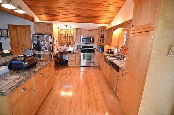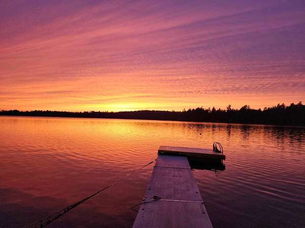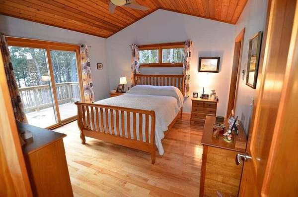 This waterfront oasis is a beautiful home that sits on 2.33 acres with 243 feet on Bog Lake and a private dock. Enjoy beautiful sunsets from your living room, kitchen, expansive deck or the private deck off the primary bedroom. This home boasts a 3 car heated garage (radiant heat), automatic generator and a finished upstairs with full bathroom and beautiful wood floors. This space can be used as an office, guests space, game room and more. This home also features beautiful wood beams, wood and tile floors, open concept living space, along with main floor primary bedroom and bathroom, primary bathroom features a spa shower, walk in closet and private 7 x 14 deck, kitchen and laundry. The basement features 2 bedrooms, 1 bathroom, ample storage, utility room and an endless pool that features 3 water depths for different types of water activities. All of the rock walls in the home feature stones from local blueberry fields. Home has a 300ft by 8ft L shaped paved driveway and the main deck is 7x11/11x15. Homeowners on Bog Lake also have access to a private boat ramp on Fulton Lake. Bog Lake is stocked with Salmon and Brook Trout. Bass, Pickerel and White Perch are active natural fish. This lake does not allow jet skis. Fulton Lake is limited to 10 horsepower and does not allow jet skis.