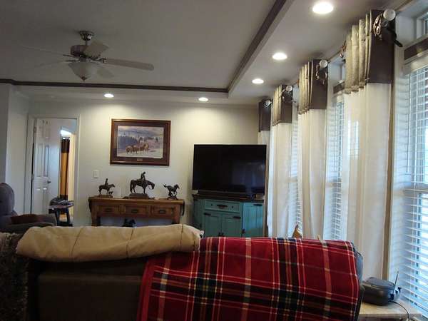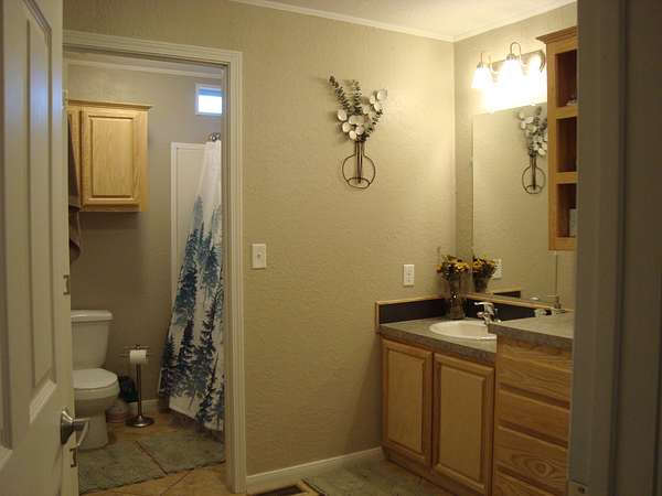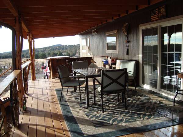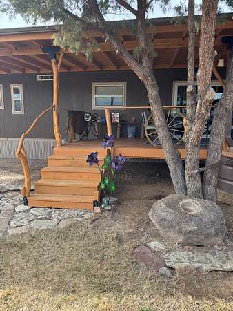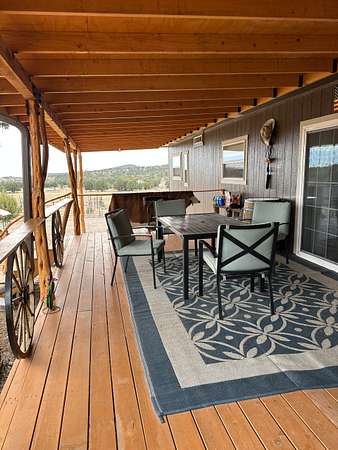 The property is well-improved with comfortable residential accommodations and extensive ranch infrastructure. The main residence is a 2022 manufactured home offering 3 bedrooms, 2 1/2 bathrooms, and 1,792+- square feet of living space. The home features a large 41' x 60' covered wood deck on the east side, including a 14' x 16' enclosed section, as well as an 8' x 22' covered front deck, providing ample outdoor living and entertaining space.