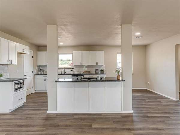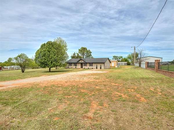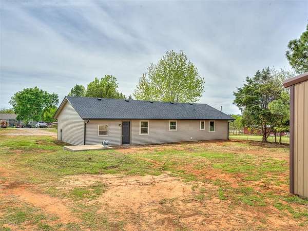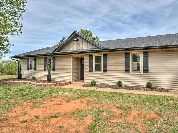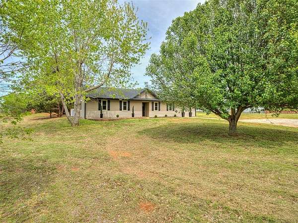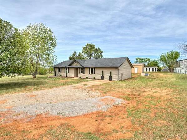 This stunning, fully remodeled 3-bedroom, 2-bath home sits on beautiful acreage in peaceful rural Blanchard, Oklahoma, within the highly sought-after Bridge Creek School District. Offering the perfect balance of modern updates and country living, this property delivers space, privacy, and convenience all in one. No detail was overlooked in this top-to-bottom renovation. The home has been thoughtfully updated to provide worry-free living with stylish finishes and quality craftsmanship throughout. Recent upgrades include a new roof with new decking, water heater, windows, exterior siding, modern LED lighting, ceiling fans, fresh interior and exterior paint, and all new flooring throughout. The fully redesigned kitchen serves as the heart of the home, featuring brand-new cabinetry, 3cm granite countertops, and stainless steel appliances, including dishwasher, range and microwave. Both bathrooms have been completely updated with new vanities, fixtures, and sleek walk in shower in the primary and a new tub and shower surround in the guest bath. Additional upgrades include: LED lighting, ceiling fans, and smoke alarms. Step outside and enjoy wide-open space, peaceful surroundings, and beautiful country views. The property offers plenty of room for outdoor living, gardening, or simply enjoying the quiet lifestyle. A 20x30 shop with concrete floors and electricity, and an 8'x40' shipping container partitioned for animals or livestock, Ideal for hobby's or storage needs. Conveniently located near Highways 37, 4, 9 and I44, offering easy access to Tinker AFB, FAA, Oklahoma City, Norman, and Mustang, giving you the best of country living without sacrificing convenience. This is the kind of property that rarely hits the market, fully updated, move-in ready, and sitting on acreage with everything already in place. This home also qualifies for USDA rural financing with zero down payment. Schedule your private showing today to experience everything it has to offer.
