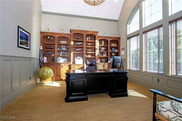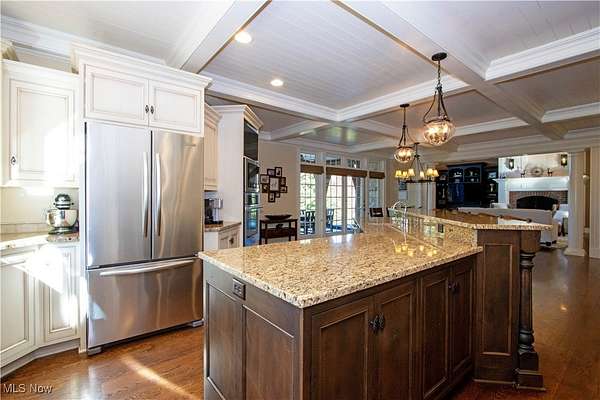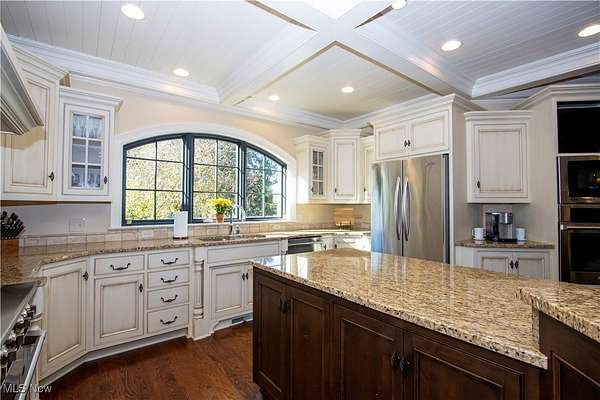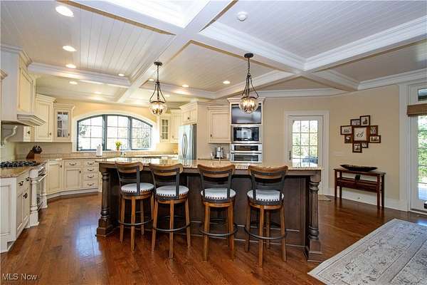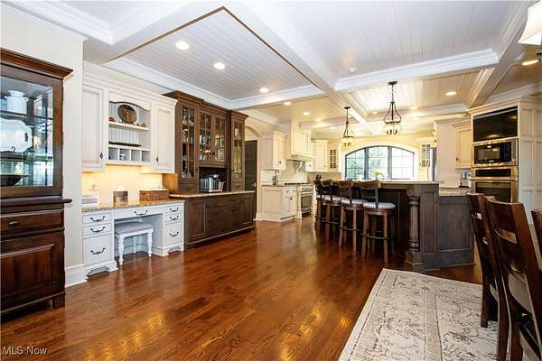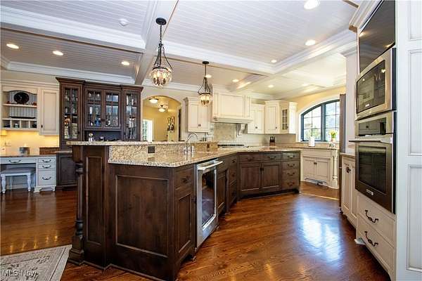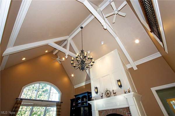 - Beamed Ceilings, Bookcases, Breakfast Bar, Built In Features, Cathedral Ceilings, Ceiling Fans, Chandelier, Coffered Ceilings, Crown Molding, Double Vanity, Eat In Kitchen, Entrance Foyer, Granite Counters, High Ceilings, High Speed Internet, His And Hers Closets, Kitchen Island, Multiple Closets, Open Floorplan, Vaulted Ceilings, Walk In Closets