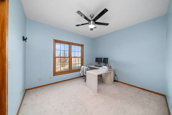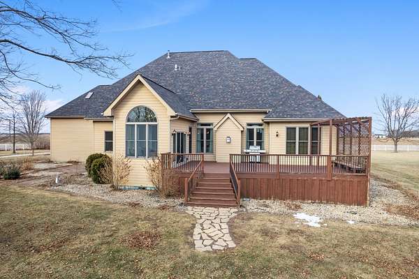 If you're impressed by the photos, prepare to be amazed when you see this home in person. The quality of construction, the thoughtful layout, and the extensive list of updates truly set this property apart and make it even more impressive than what pictures alone can capture. From the moment you arrive, you can feel the pride of ownership and attention to detail that has gone into maintaining and improving this exceptional home. Located in Northern LaSalle County with a Leland address and within the highly regarded Somonauk School District 432, this property is truly one of the nicest rural homes you will find in the area. Built in 2002, the home offers 2,790 square feet of beautifully designed living space with 4 bedrooms, including a main-level master suite. The master bedroom features elegant coffered ceilings, a walk-in closet, and a full master bath complete with double granite vanities, a jetted tub, and a walk-in shower, creating a true retreat. The largest bedroom on the second level measures an impressive 23' x 18' and could easily serve as a second master suite, with room to expand into the unfinished attic space for an even larger walk-in closet and private bath, offering endless future potential. One of the true showstoppers of the home is the sunroom, which must be seen to be fully appreciated. With southern exposure and beautiful views to both the east and west, this space is perfect for morning coffee, evening relaxation, or entertaining guests while enjoying the surrounding countryside. The home features a fantastic layout that includes a private office, a spacious kitchen with breakfast bar and eat-in table space, a formal dining room, and a living room highlighted by a gas fireplace and vaulted ceilings. Additional interior features include 6-panel doors, an oak staircase, two furnaces, two air conditioning units, a Brinks home security system, 9-foot basement ceilings, and a basement already roughed in for a future bathroom. The exterior is equally impressive and sits on 5 full acres with beautiful landscaping, custom drainage, and a fully fenced yard with low-maintenance PVC fencing. An extra-wide concrete driveway leads to the incredible 4-car finished garage, offering abundant space for vehicles, storage, and projects. Adding even more value is the newer 30' x 48' outbuilding completed in fall of 2022, featuring a 14' x 16' insulated overhead door and a separate driveway off 45th Road, making it ideal for equipment storage, hobbies, or a workshop. And now for the updated list that truly sets this home apart: water softener new in 2026, a new roof installed in 2019 by a local contractor, a Generac whole-house generator in 2019, a heat-on-demand tankless water heater in 2019, and almost all new Andersen windows installed in 2021 and 2022. These major upgrades provide peace of mind, efficiency, and long-term value. With its exceptional condition, extensive updates, functional layout, and beautiful setting, this property truly offers everything you could want in a rural home. Schedule your private showing today and experience it for yourself.