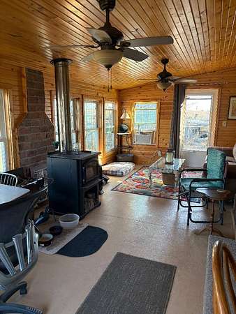 Tucked away on 8 acres with the North Fork Solomon River running through is this peaceful, secluded home offering a country lifestyle. The charming farmhouse has had a total remake down to the studs! This home is a 1BD/1BA home offering the perfect mix of rustic charm and modern updates. This property has several well maintained outbuildings including a barn/granary with lean-to, bunk house, tool sheds, refurbish office, and chicken coop. The home offers a living/dining area, charming kitchen, bedroom with access to full bathroom and walk in closet. A large laundry room with pantry and other storage options. Even more living space is the large sunroom off the living room. This area offers a wood burning stove, walls of windows for viewing the country side, space for guests to spend the night and office space. It is the perfect room to relax and enjoy life! A large wooden deck on the South side of home is perfect for overlooking the farm. Major updates to home; metal roof, new wiring and plumbing, high efficiency furnace and AC, blown in insulation, new dry wall and laminated flooring, new 1060 gal septic system, new garage door and electric opener, new concrete floor to garage, and whole house water filter. The outbuildings include: 1900 34X 26 barn/granary with solid leak proof roof 1920 32X18 rock bunk house updated living space with wood stove 1910 20X10 tool shed refurbish into a comfortable office 1900 8X15 utility shed 2024 chicken coop with fenced pen The property also offers a large fenced garden plot with established strawberry and asparagus beds. The Solomon River run through the South side of the property with large cottonwood and other trees, open space with buffalo grass and bushes, no through traffic. The property offers so much and is a must see if you are looking for a secluded and tranquil life.