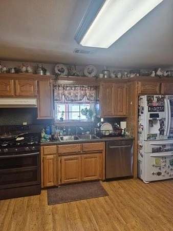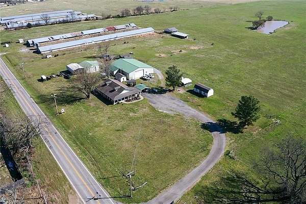 Spacious Custom Home on Acreage w/ Shops & Endless Possibilities.Well planned & thoughtfully built, this home offers a comfortable, homey feel w/ an easy-flow floor plan in a desirable location. If you’re looking for space inside & out, this one is a must-see!Featuring 3br/2ba, you’ll immediately notice how open everything feels.Spare bedrooms are 14x14 w/ large closets, while the main bedroom boasts a generous 19x20 layout.The eat-in kitchen & dining area create a warm gathering space, & the spacious living area sets the scene for relaxing at home.Step outside onto the porch & take in the view. The property includes two large shops: A 30x40 & A 50x80 complete with a commercial kitchen & a 12' lean-to. Whether you need workspace, storage, business potential, hobby space, or entertaining options, there isn’t much you can’t do or enjoy here.With abundant features & adaptable spaces, this property offers options - including the ability to keep or remove certain buildings to suit your needs.Schedule your showing today!